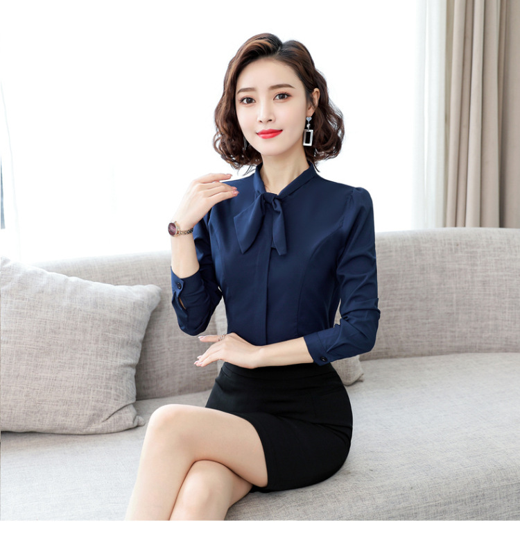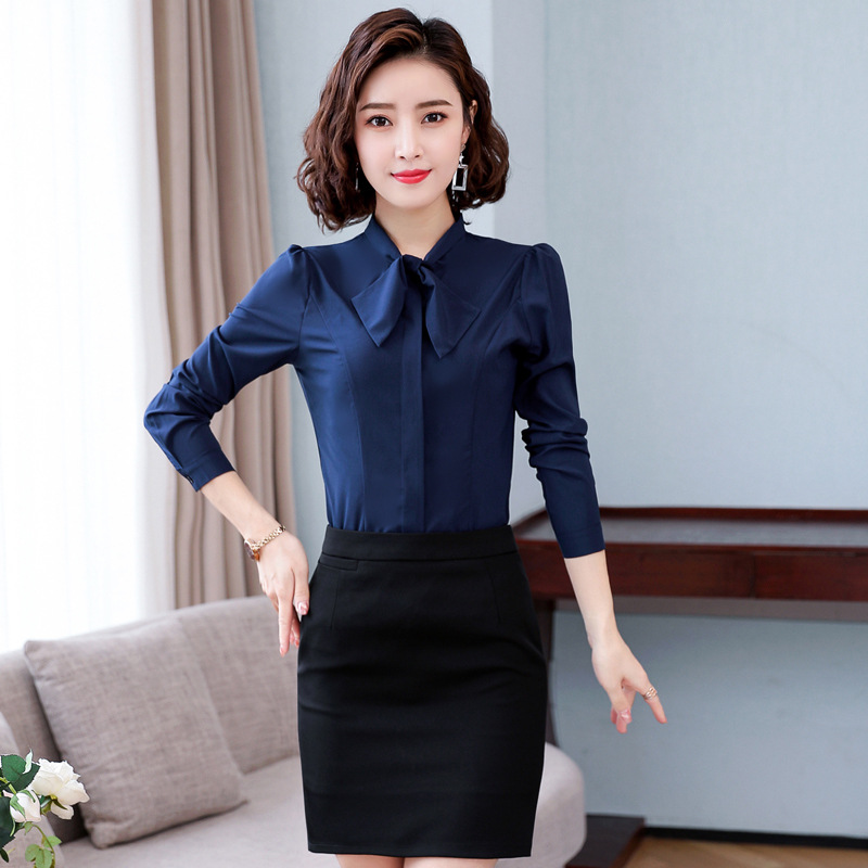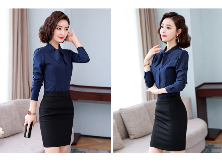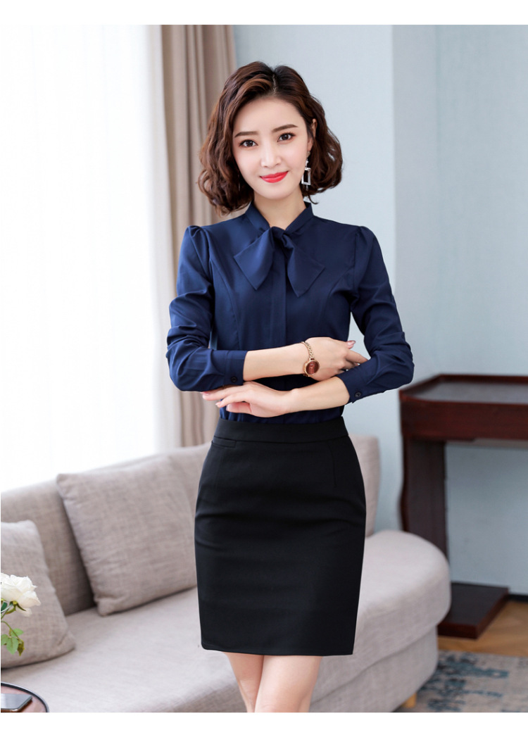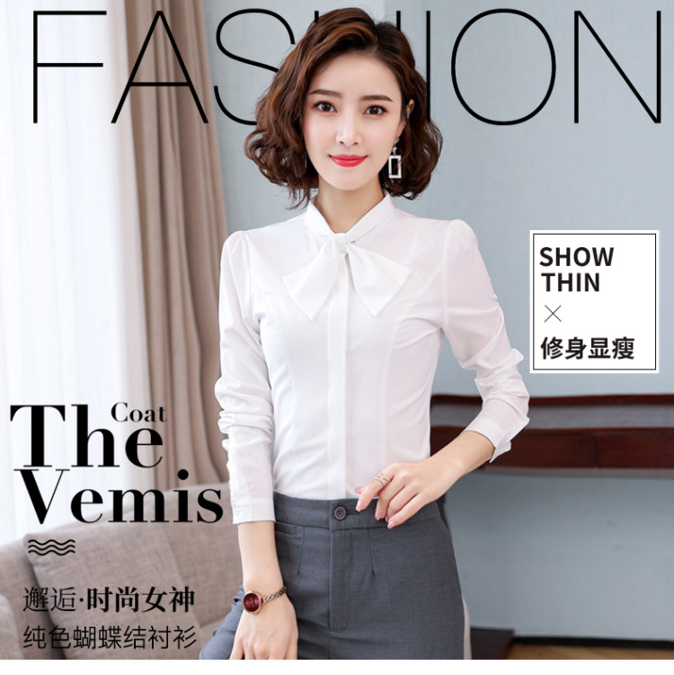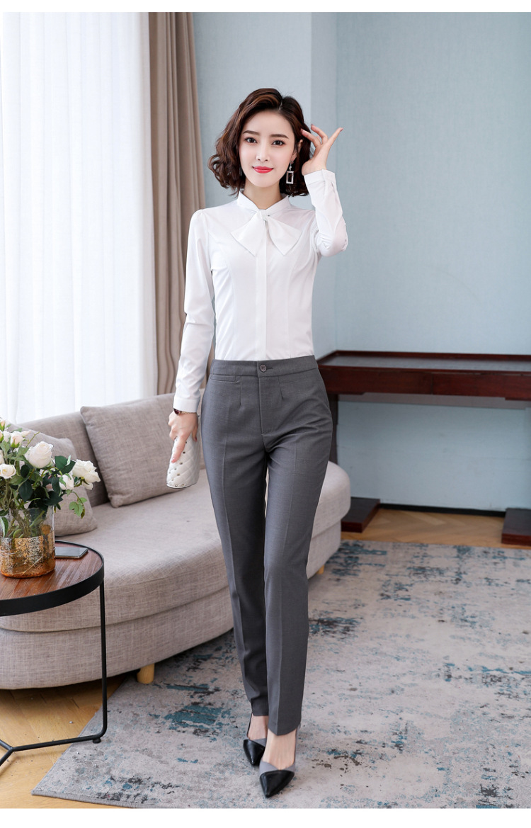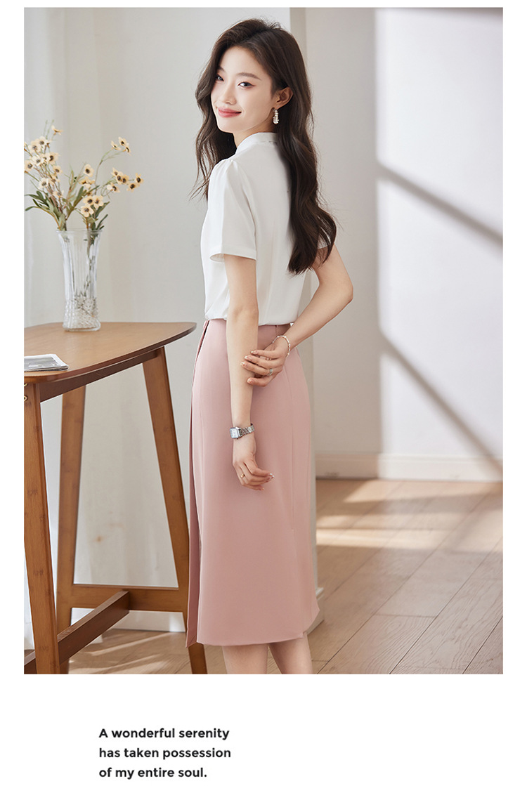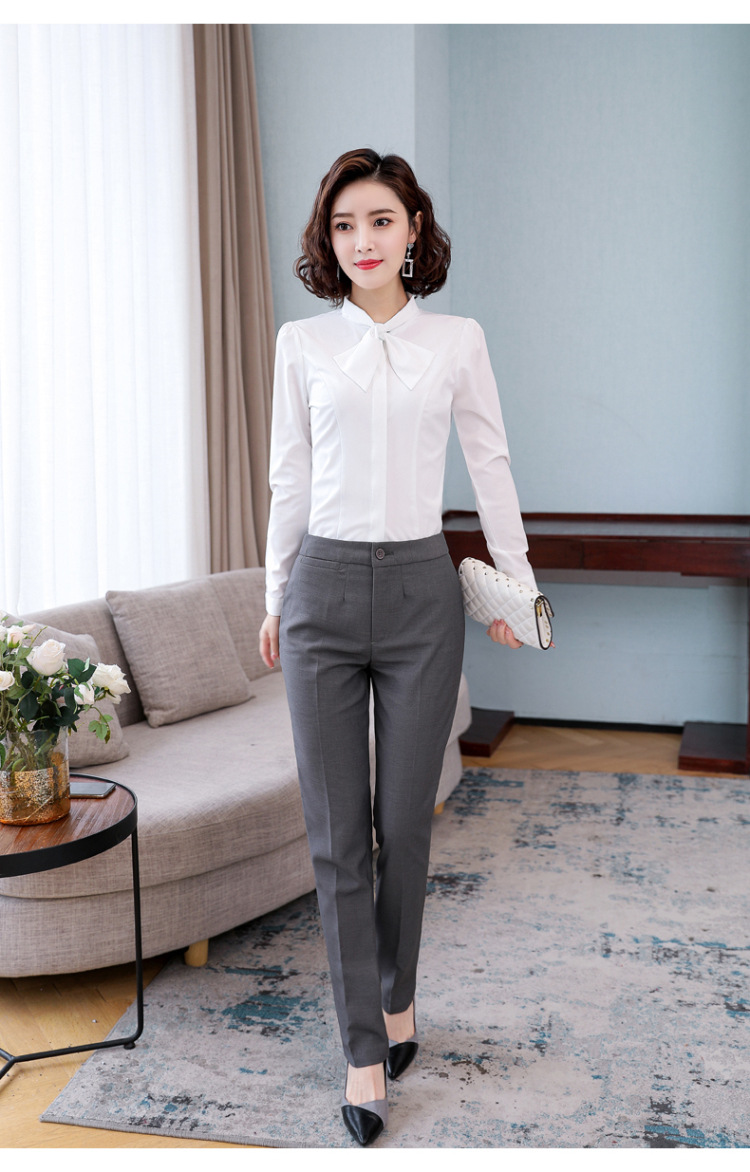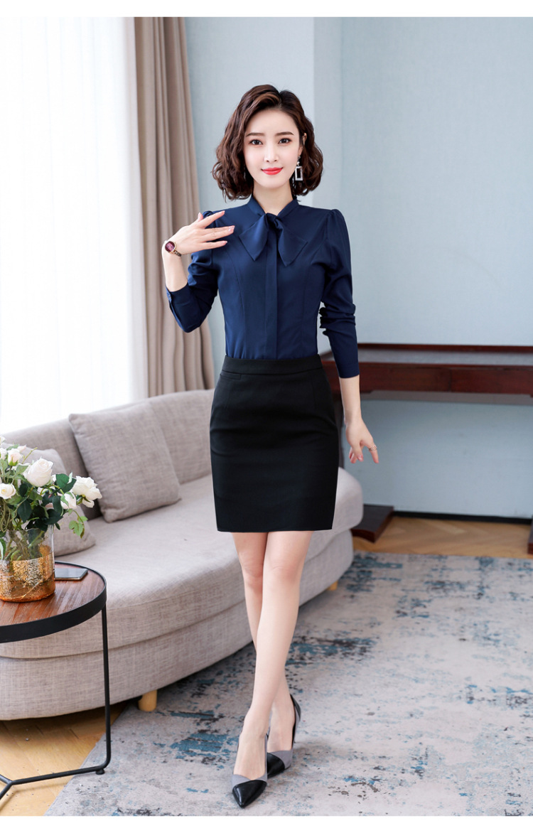 흰색 전문 짧은 소매 셔츠 여성 여름 얇은 활 쉬폰 탑 프론트 데스크 작업 옷 셔츠 세트