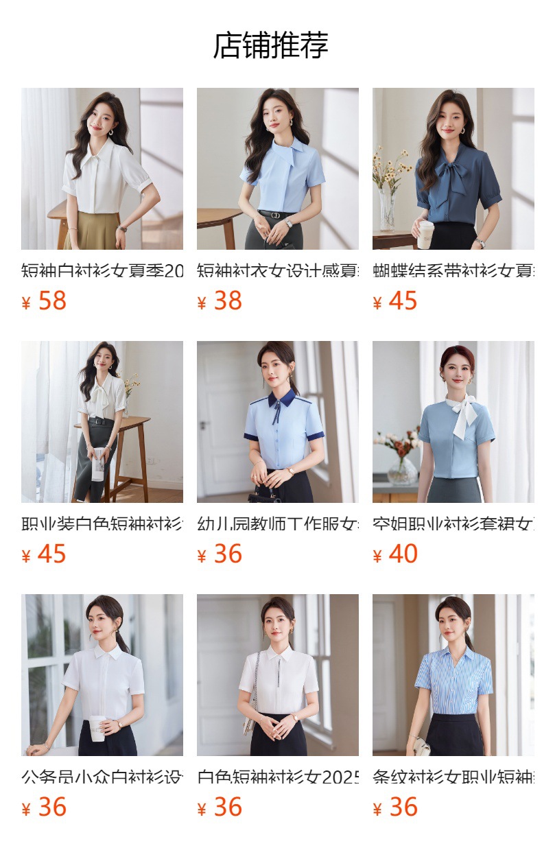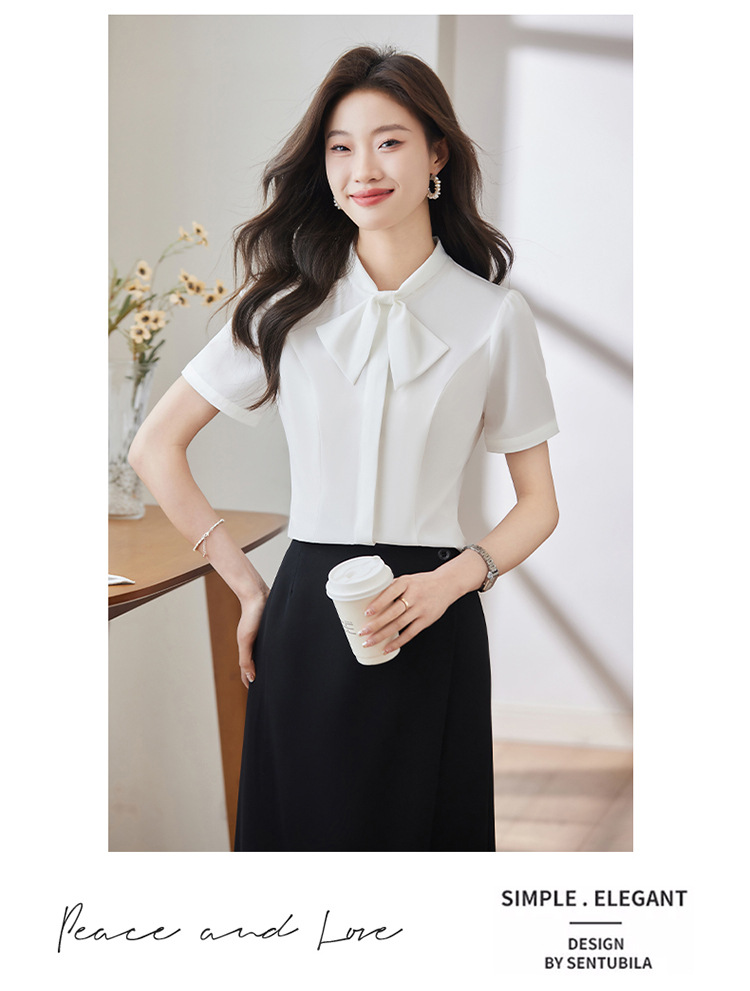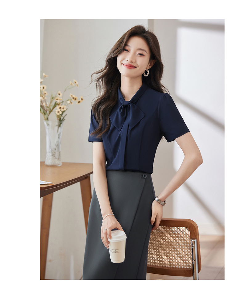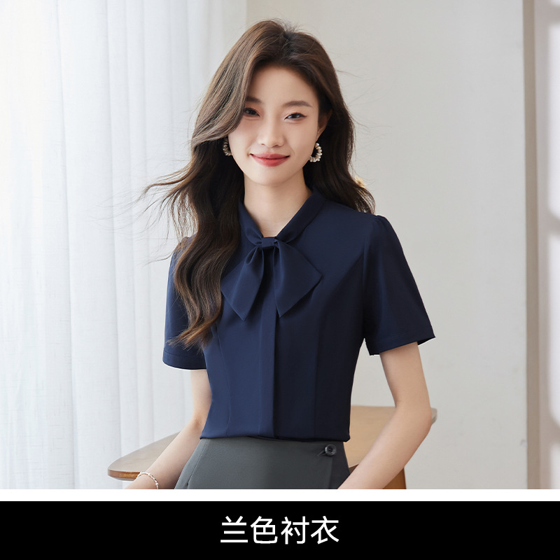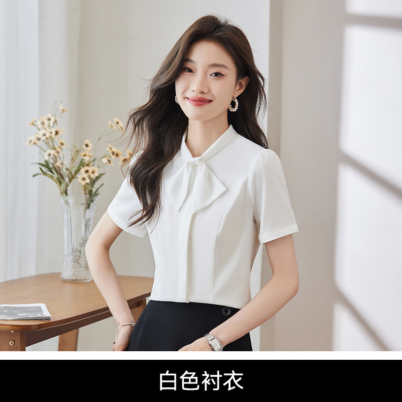 흰색 전문 짧은 소매 셔츠 여성 여름 얇은 활 쉬폰 탑 프론트 데스크 작업 옷 셔츠 세트스토어 가기