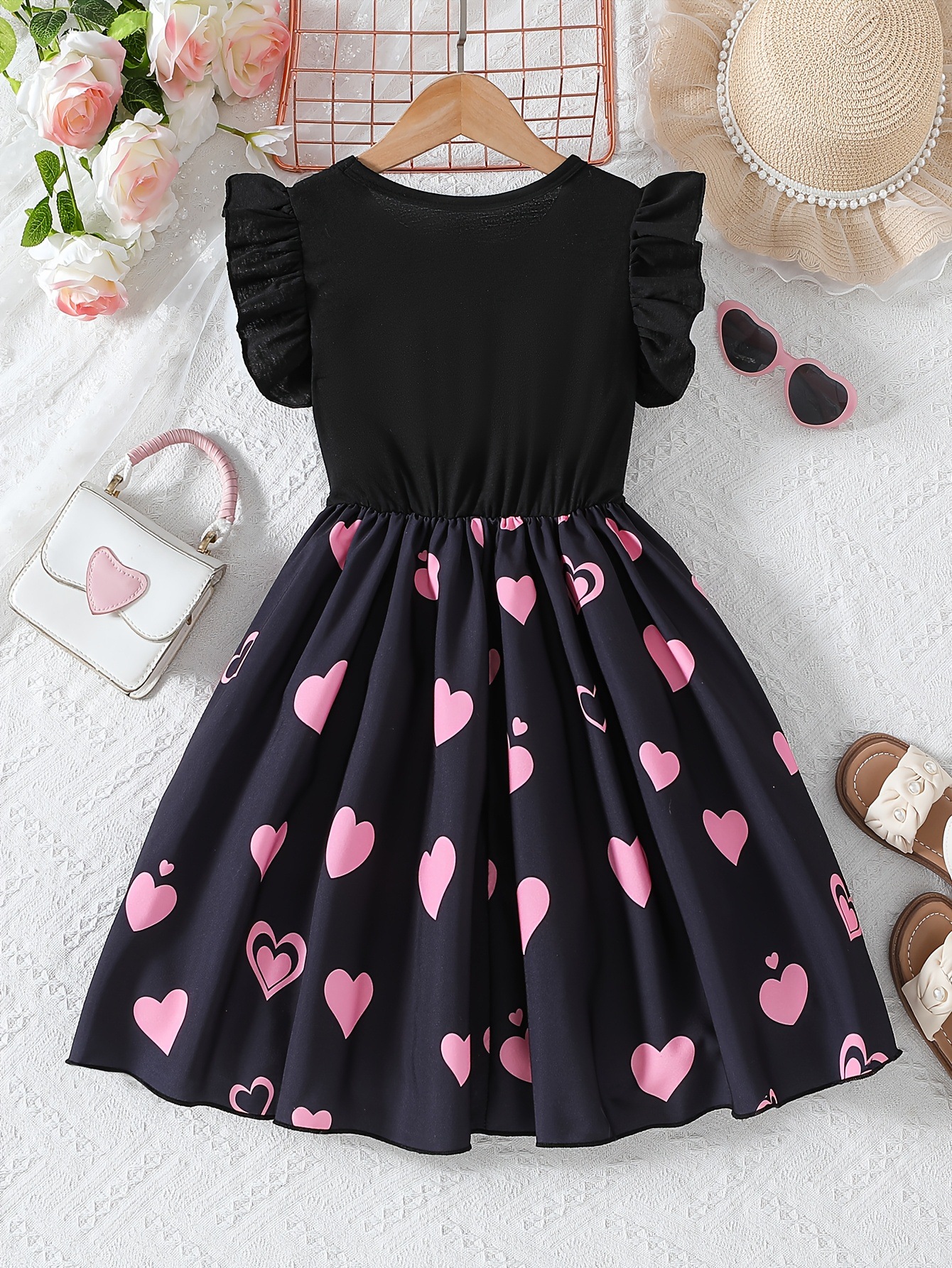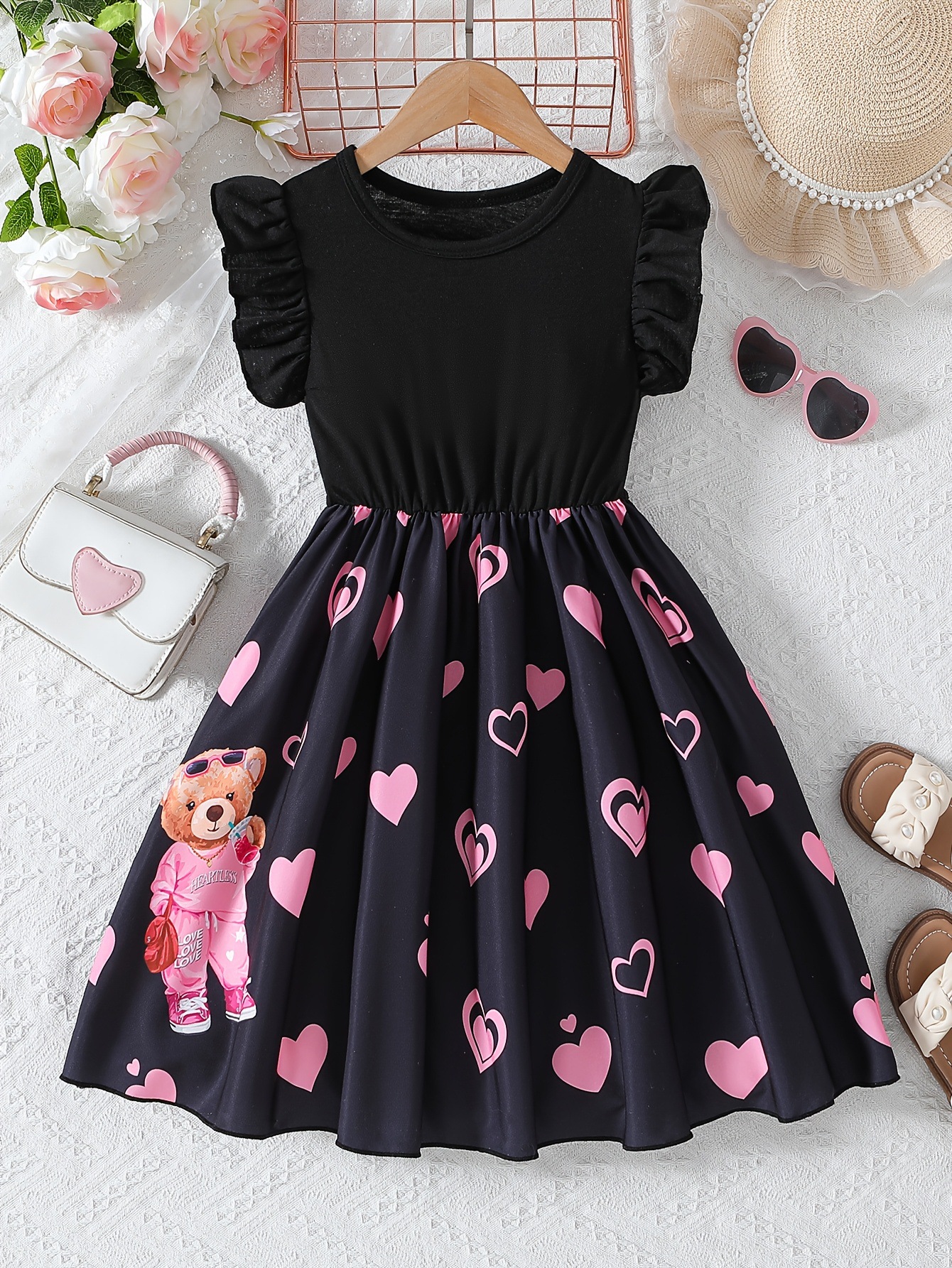 크로스 국경 아동복 소녀 원피스 달콤한 블랙 플라잉 슬리브 조끼 원피스 테디 베어 러브 프린트 여름 어린이 원피스스토어 가기