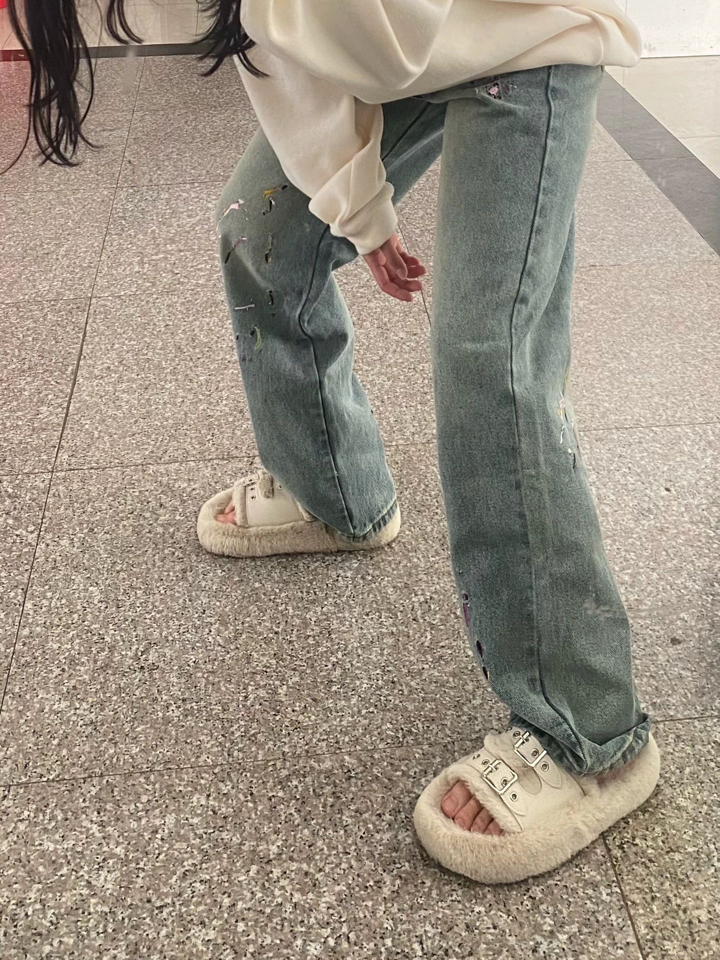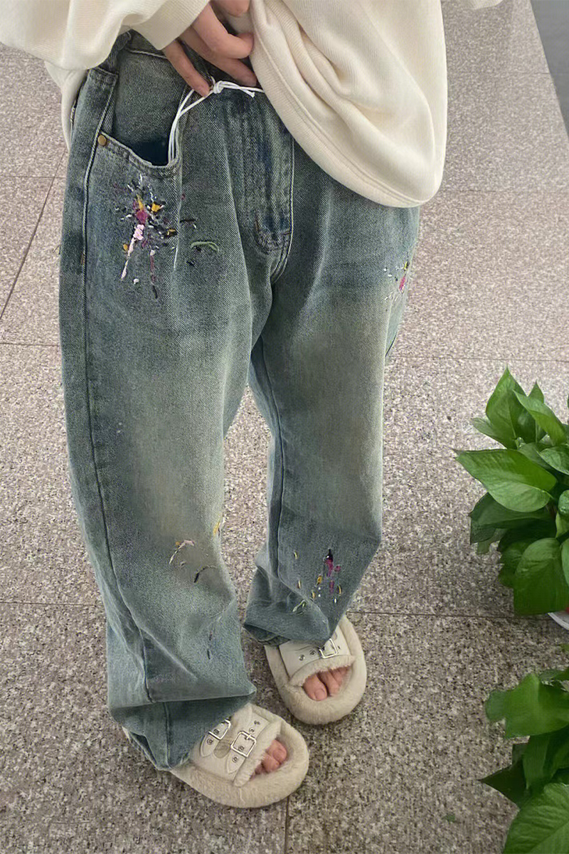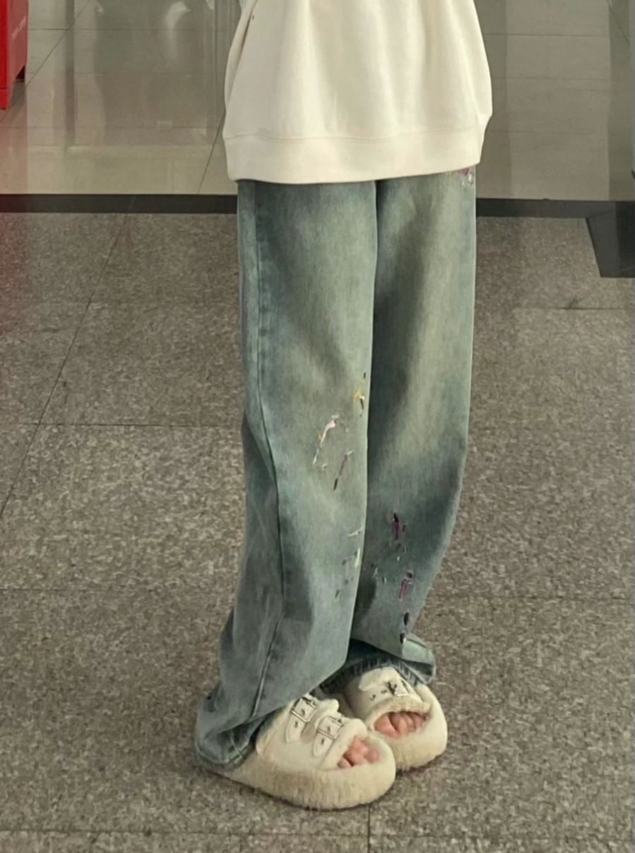 가을과 겨울 2025 새로운 플러스 사이즈 통통녀 자수 스트레이트 청바지 여성의 높은 허리 느슨한 디자인 유행 바지스토어 가기