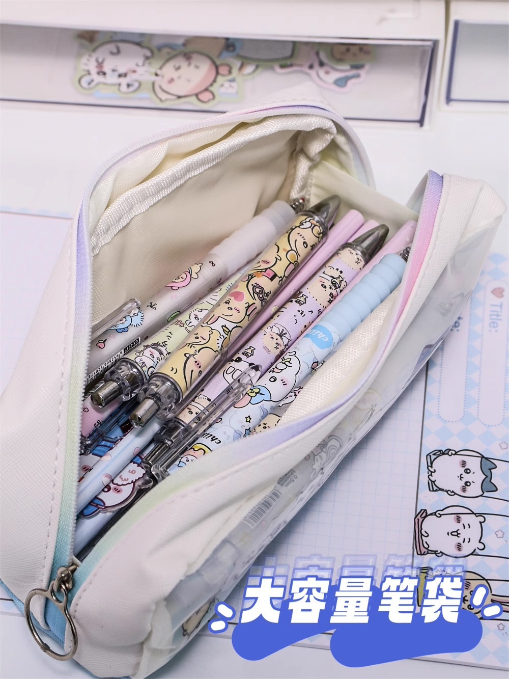 귀여운 반투명 편지지 상자 지우개 눈금자 작은 창고 만화 학생 대용량 저장 형광 연필 가방스토어 가기