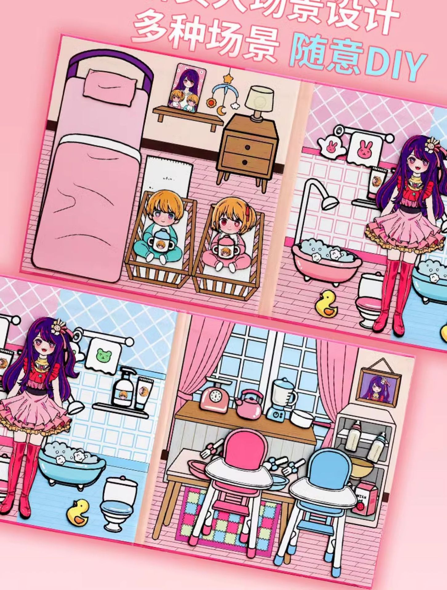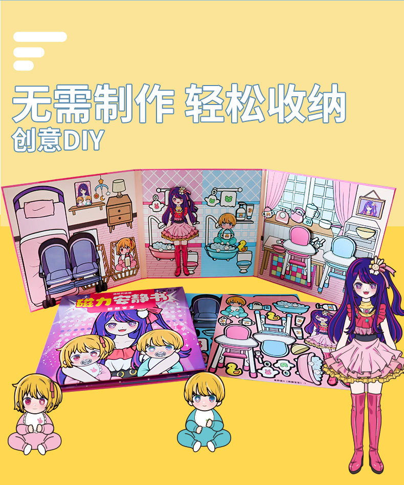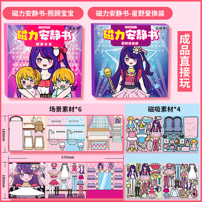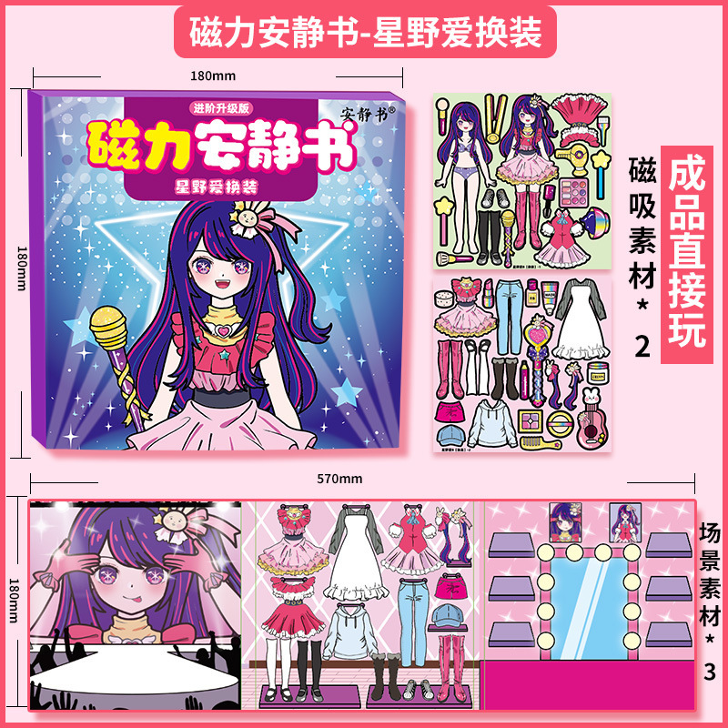 자기 조용한 책 Xingye 사랑, 아기 빅 스타 원피스 업 마그네틱 패치 소녀 수제 DIY 어린이 장난감 6스토어 가기