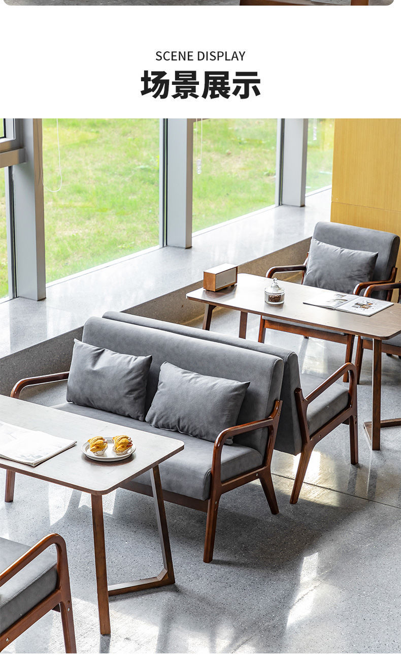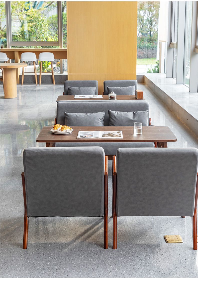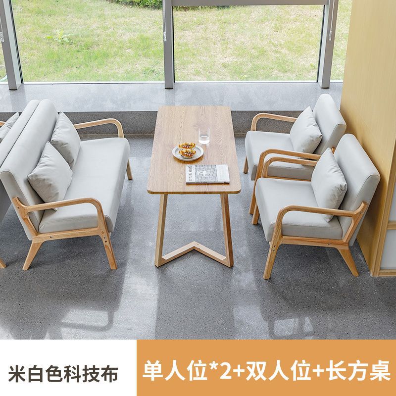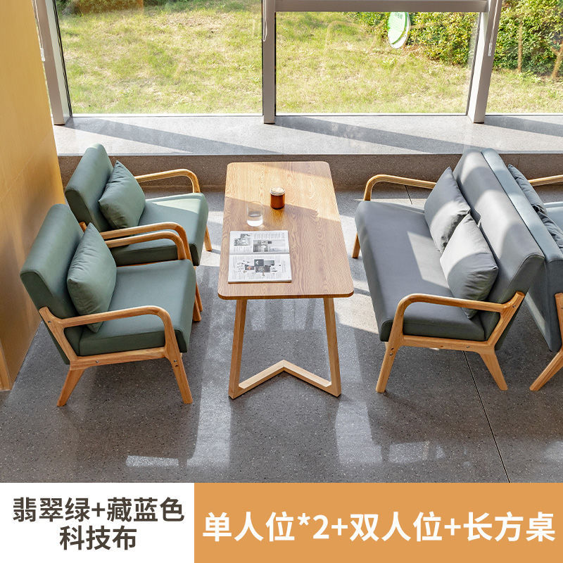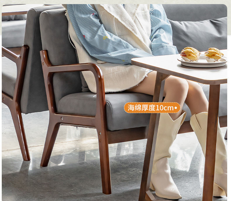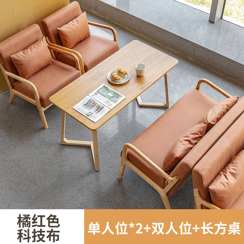 밀크 티 숍 테이블과 의자 조합 커피 숍은 상업용 솔리드 우드 소파 레트로 클리어 바 간단한 캐주얼 카드 시트를 협상합니다.스토어 가기