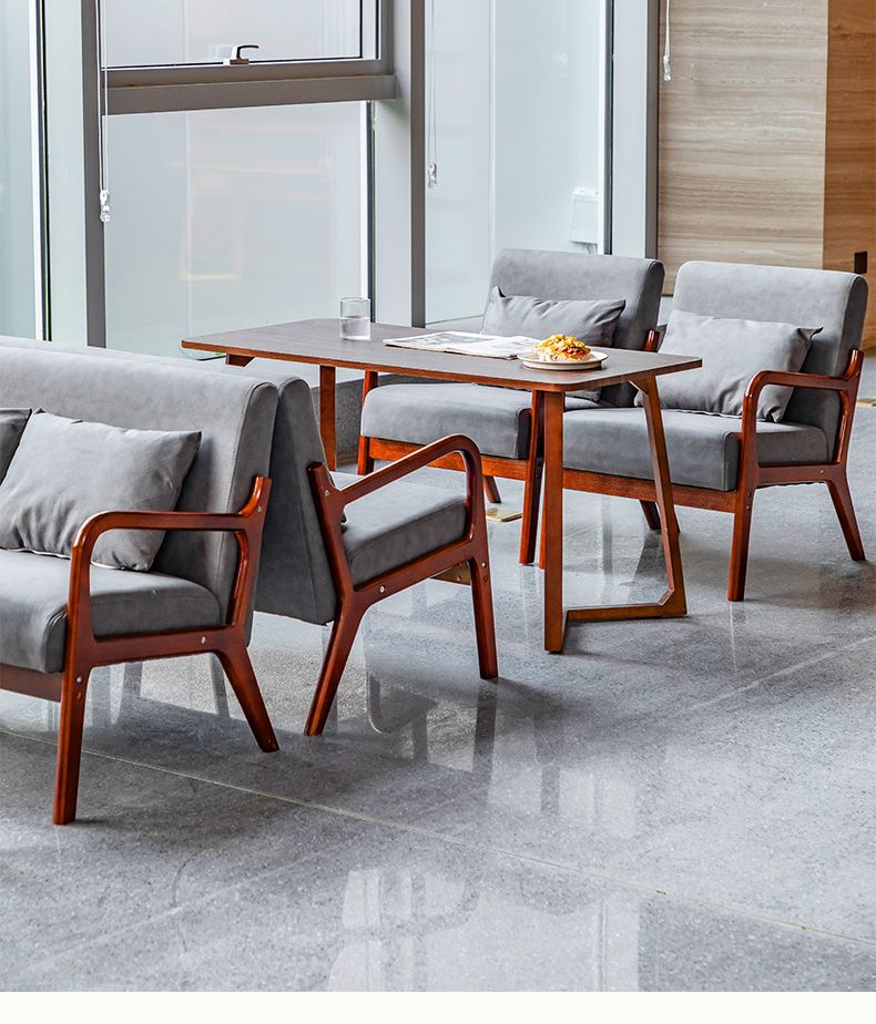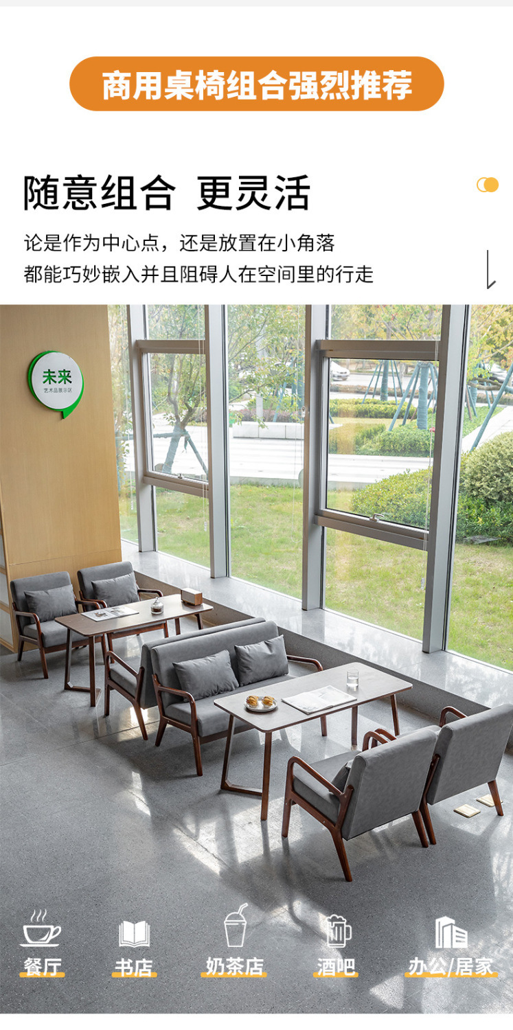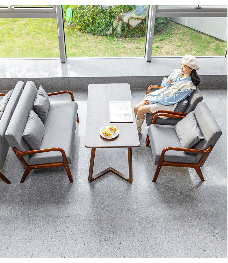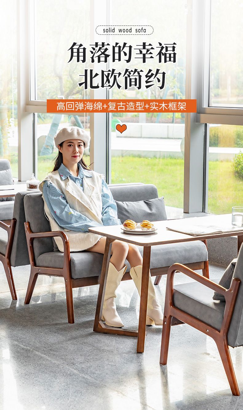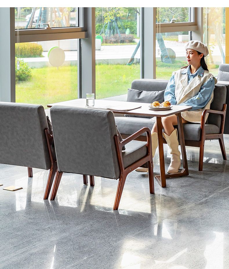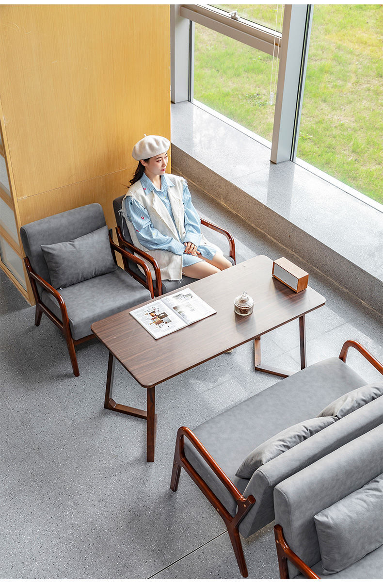 밀크 티 숍 테이블과 의자 조합 커피 숍은 상업용 솔리드 우드 소파 레트로 클리어 바 간단한 캐주얼 카드 시트를 협상합니다.스토어 가기