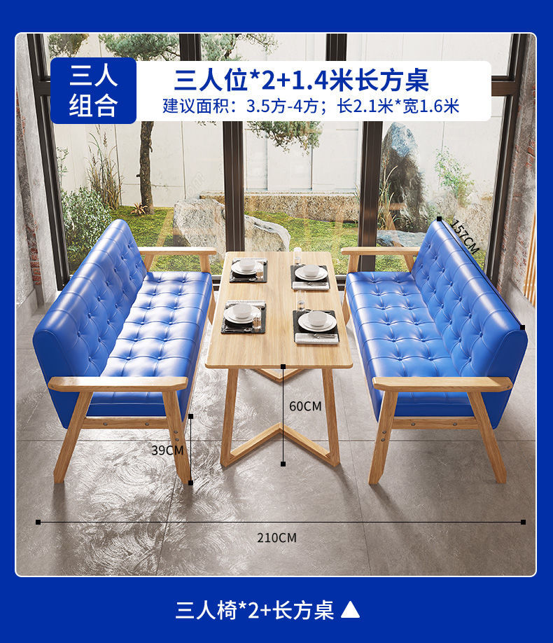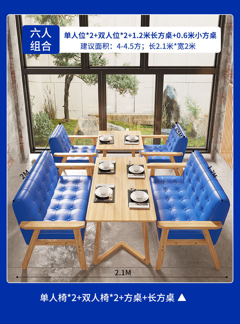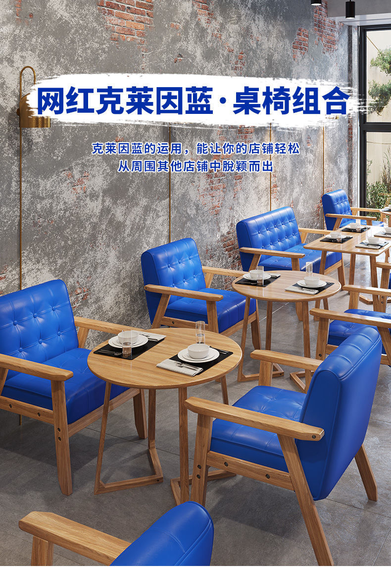 인터넷 레드 클라인 블루 소파 카페 스위트 샵 테이블과 의자 조합 간단한 협상 리셉션 솔리드 우드 캐주얼 카드 시트스토어 가기