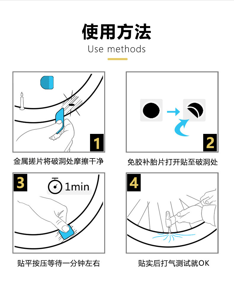 도매 자전거 접착제가없는 타이어 패치 자전거 내부 튜브 타이어 패치 도구 승마 장비 액세서리 타이어 패치