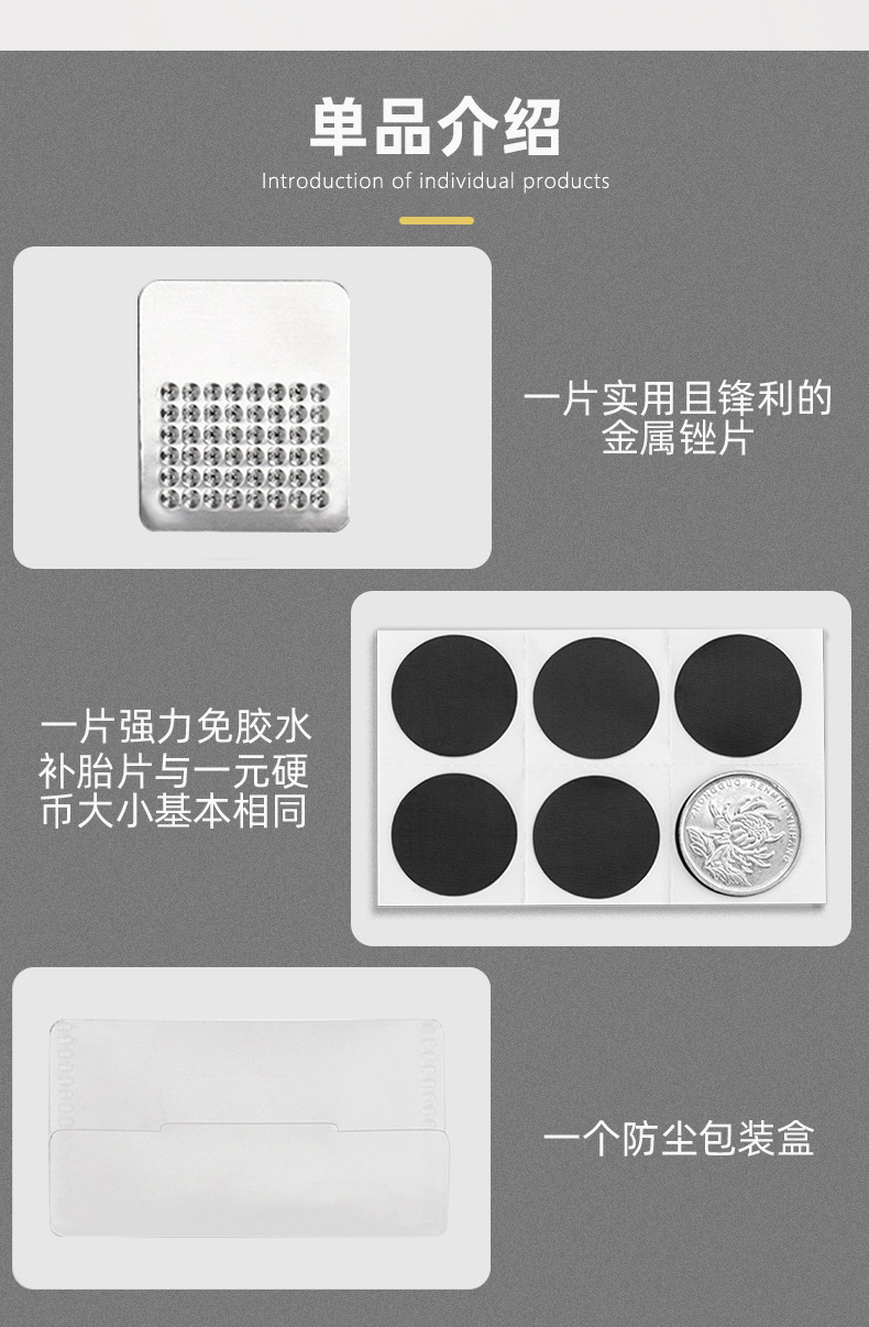 • 무접착제 사각 타이어 패치 [6개들이 1개]