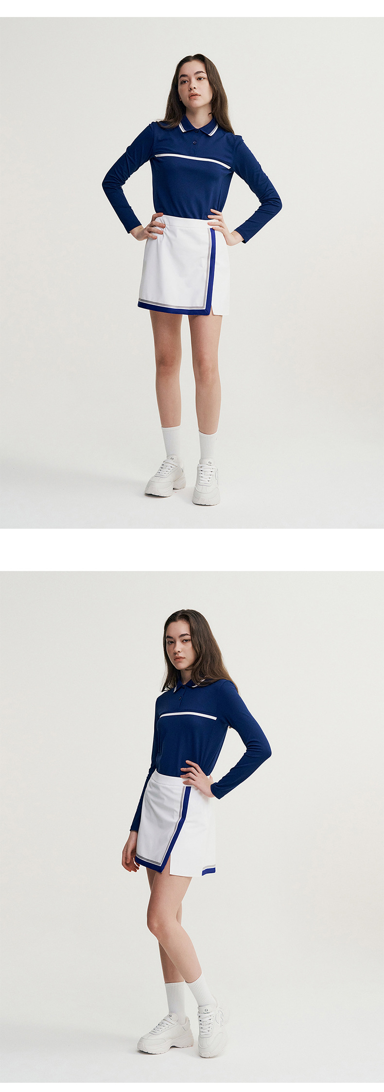 폴로 칼라 골프 테니스 탑 인터 컬러 스트라이프 스웨트 셔츠 슬림 핏 땀 흡수 야외 긴소매 여성복