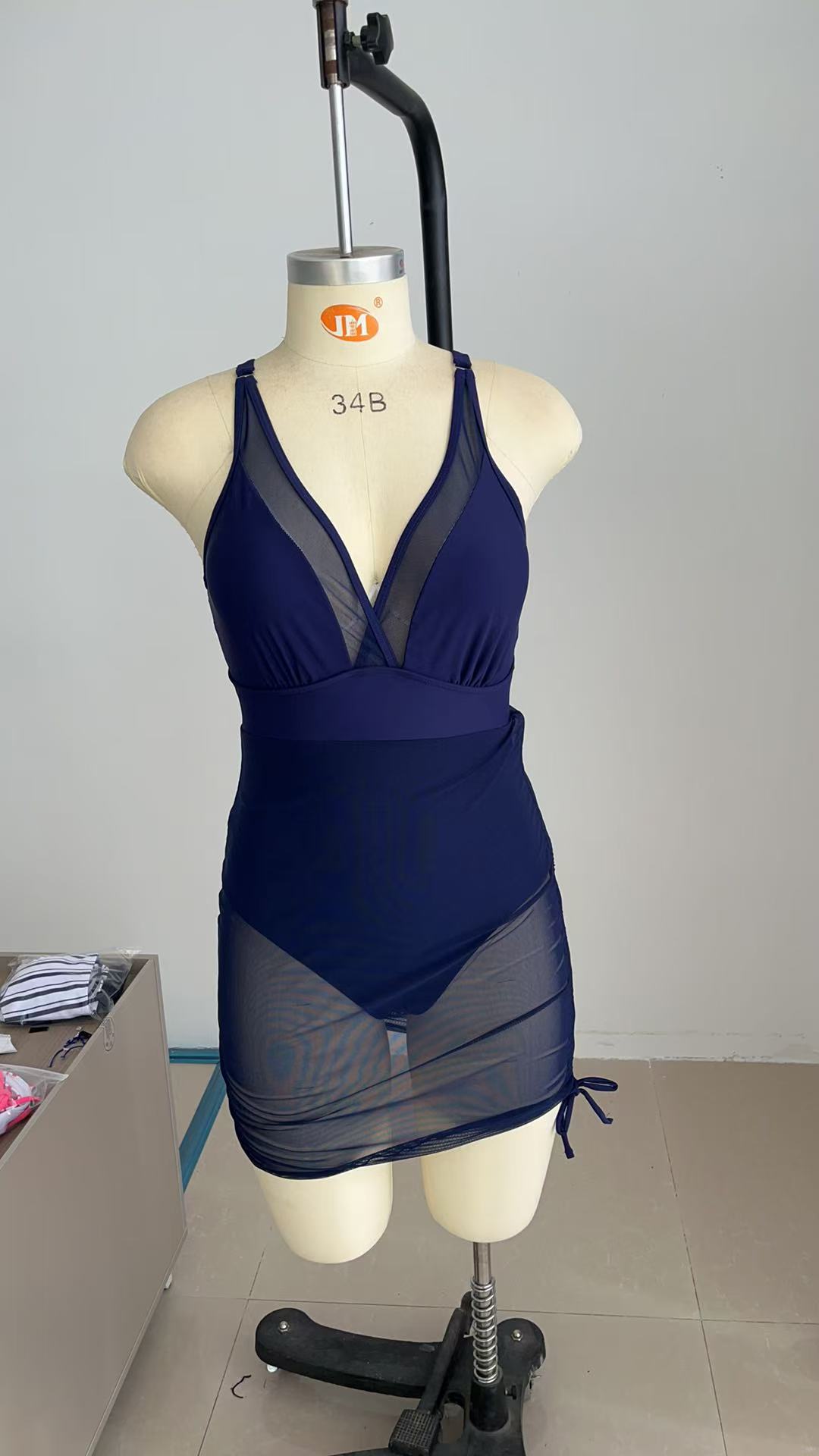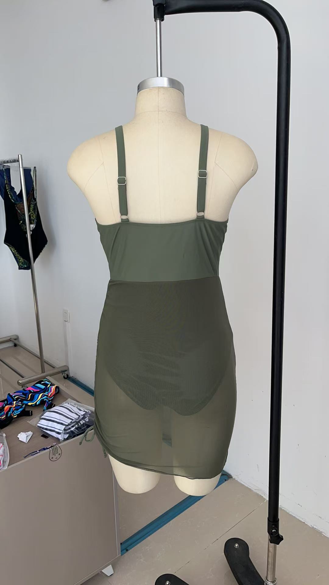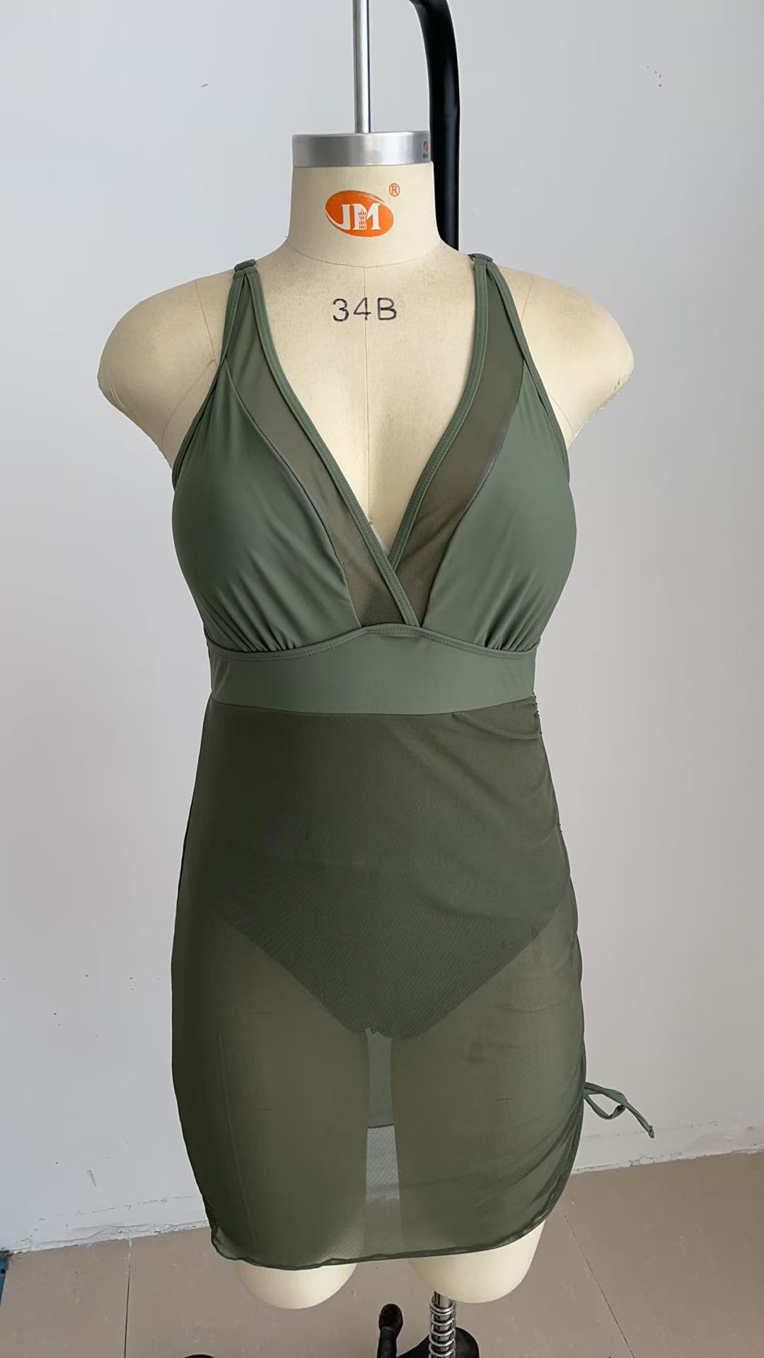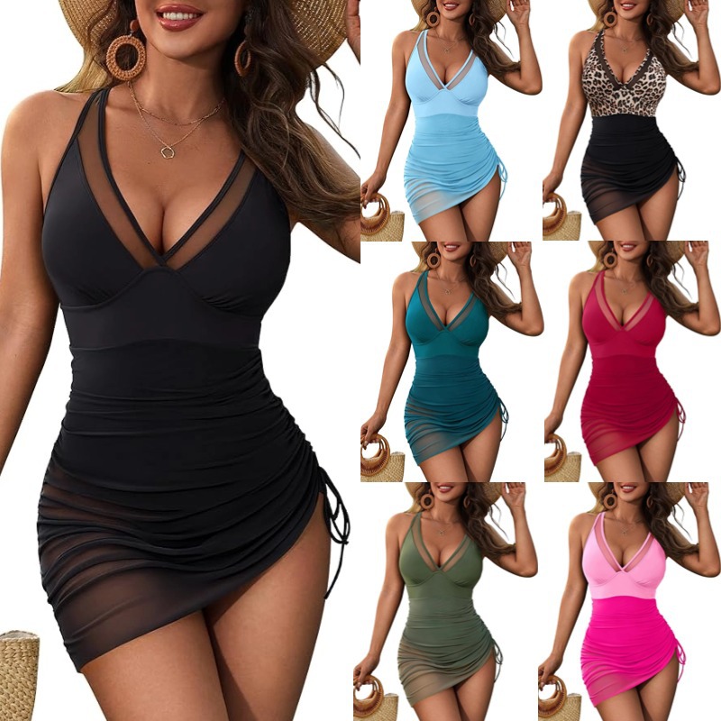 유럽과 미국의 핫 셀러 원피스 수영복 여성용 V-넥 메쉬 스티칭 사이드 드로스트링 수영복 육체 커버 슬림 핏 수영복스토어 가기
