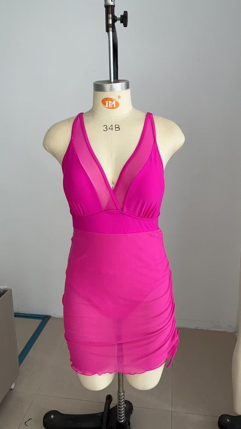 유럽과 미국의 핫 셀러 원피스 수영복 여성용 V-넥 메쉬 스티칭 사이드 드로스트링 수영복 육체 커버 슬림 핏 수영복