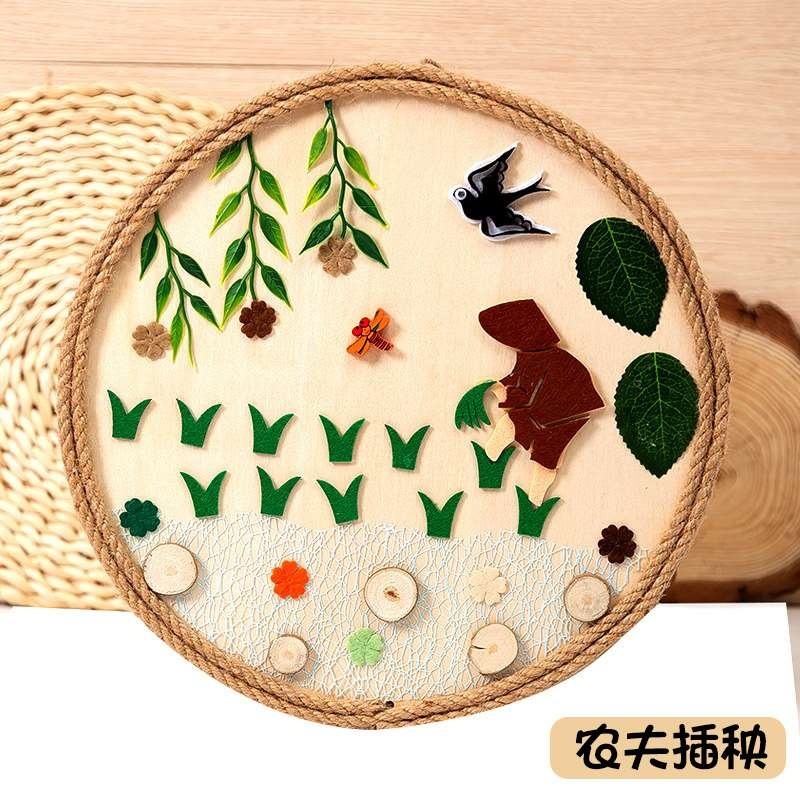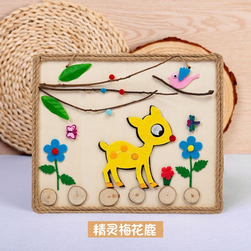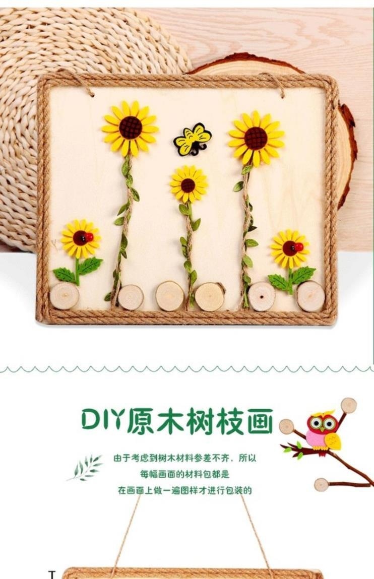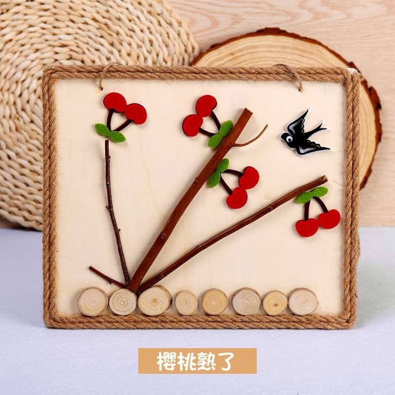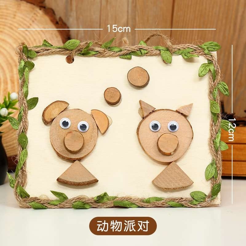 창조적 인 DIY 통나무 그림 자연 통나무 조각 나무 지점 그림 수제 재료 패키지 유치원 나무 미술 그림스토어 가기