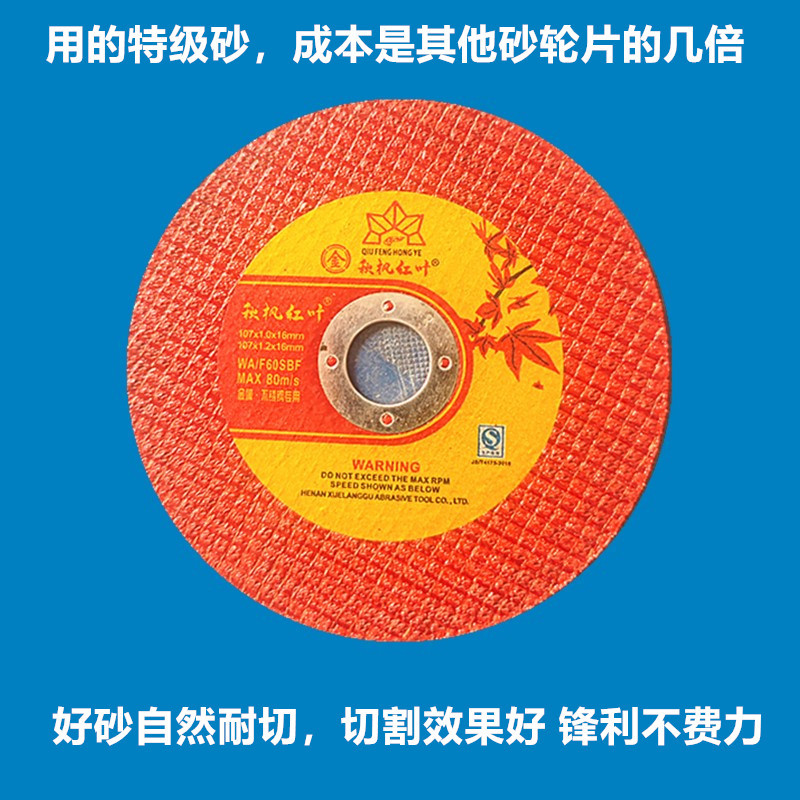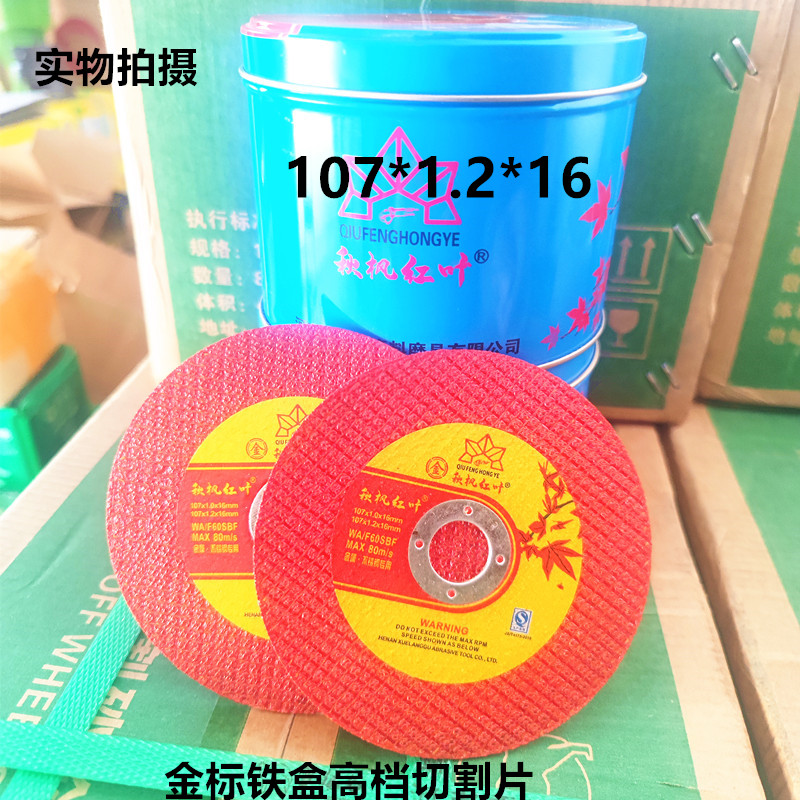 골드 라벨 레드 옐로우 가을 메이플 레드 리프 슬라이스 107*1.2*16 금속 스테인레스 스틸 앵글 연삭 조각 손 연삭 휠 모래 조각