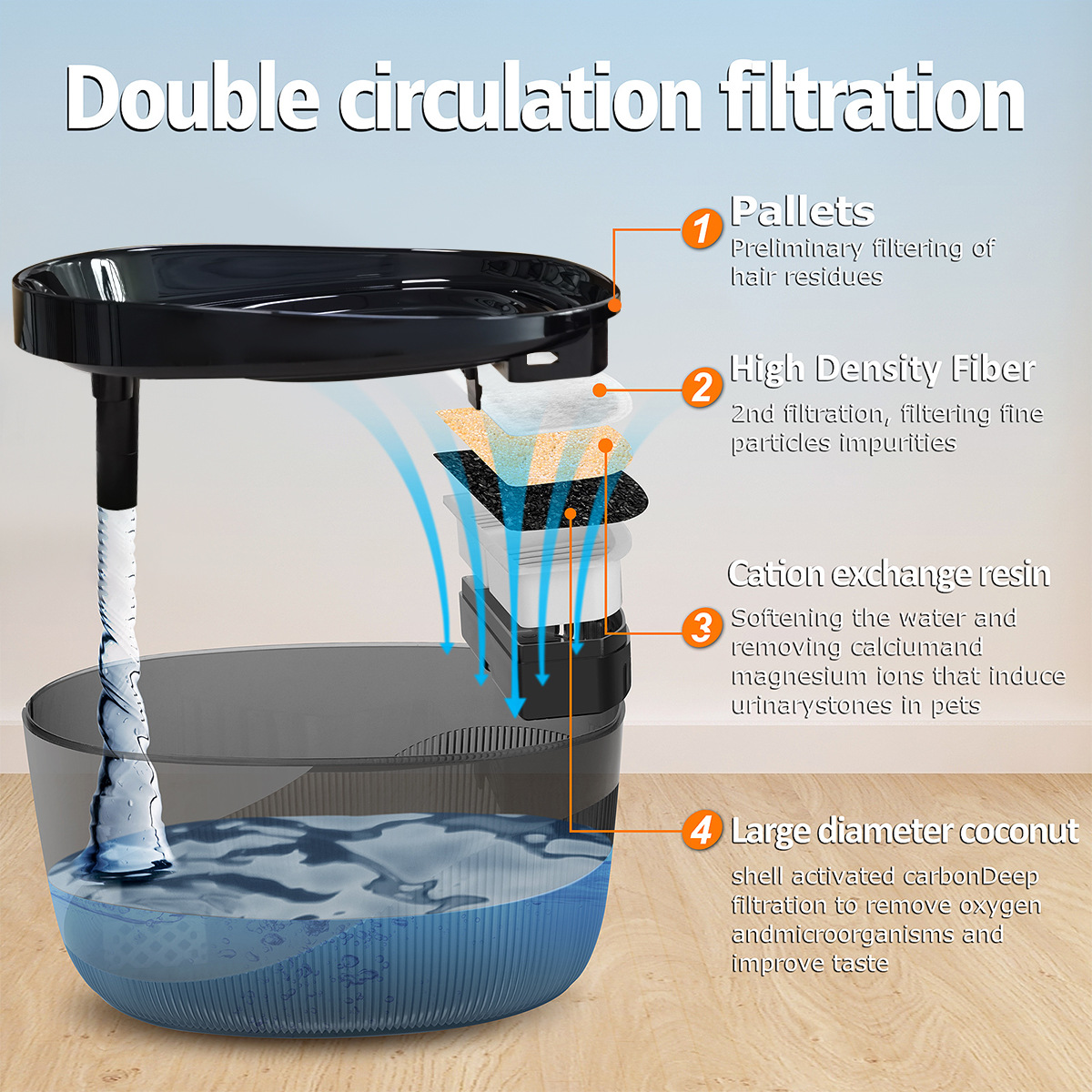 애완 동물 물 분수 국경 2.2L 애완 동물 물 디스펜서 음소거 고양이와 개를위한 자동 필터스토어 가기