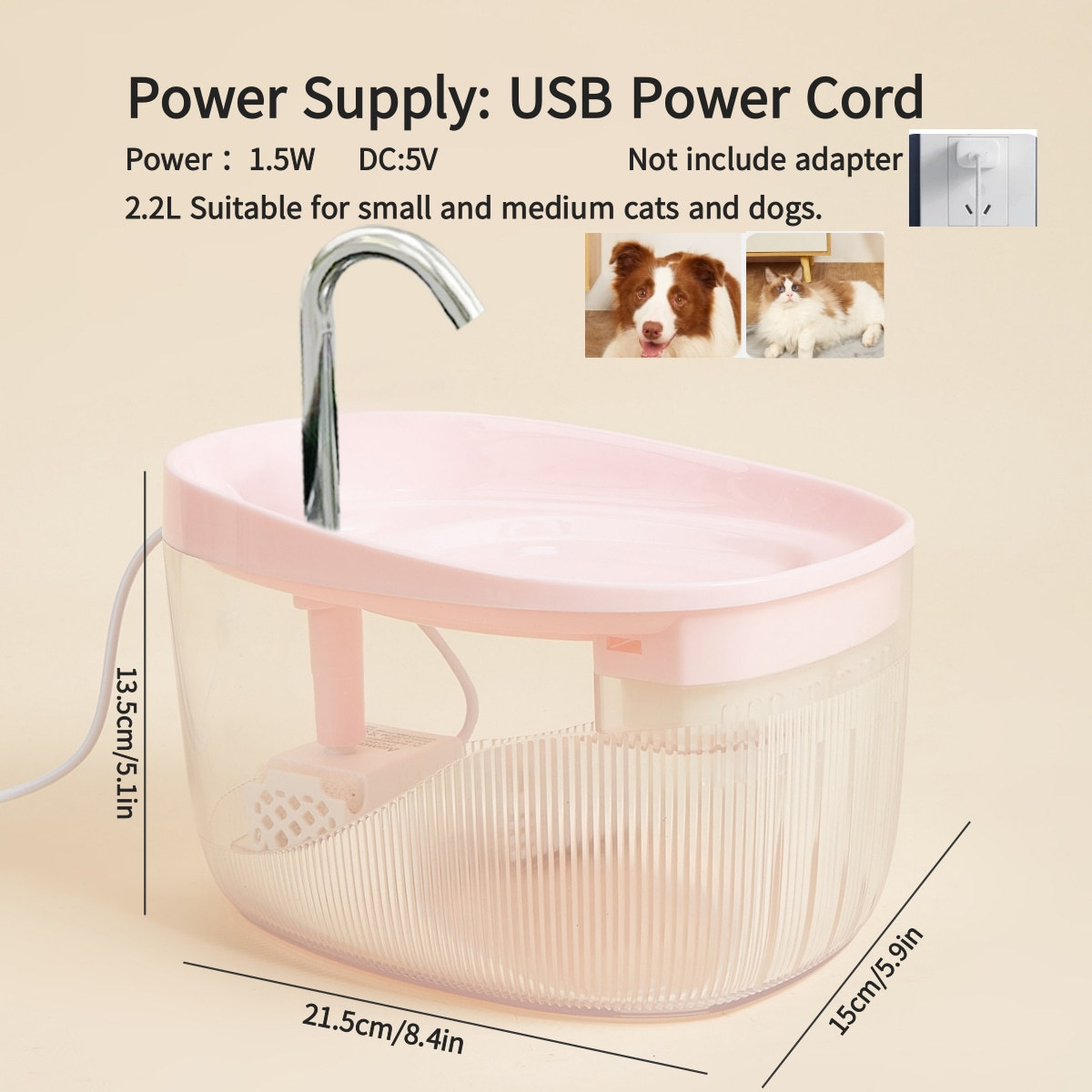 애완 동물 물 분수 국경 2.2L 애완 동물 물 디스펜서 음소거 고양이와 개를위한 자동 필터
