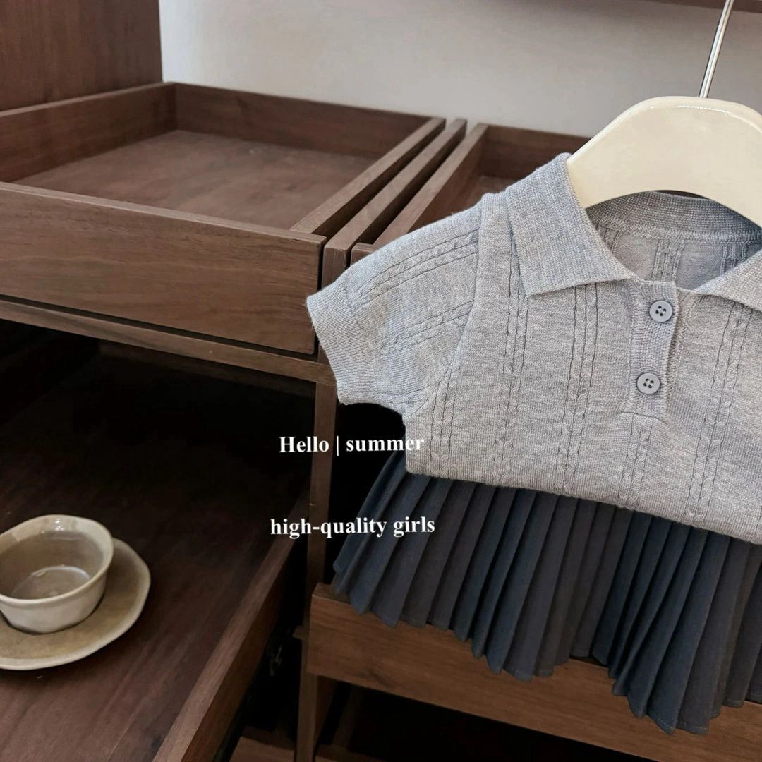 닝리 걸스 칼리지 스타일 세트 여름 걸스 서양식 니트 반팔 폴로 셔츠 주름 짧은 치마 여름 원피스