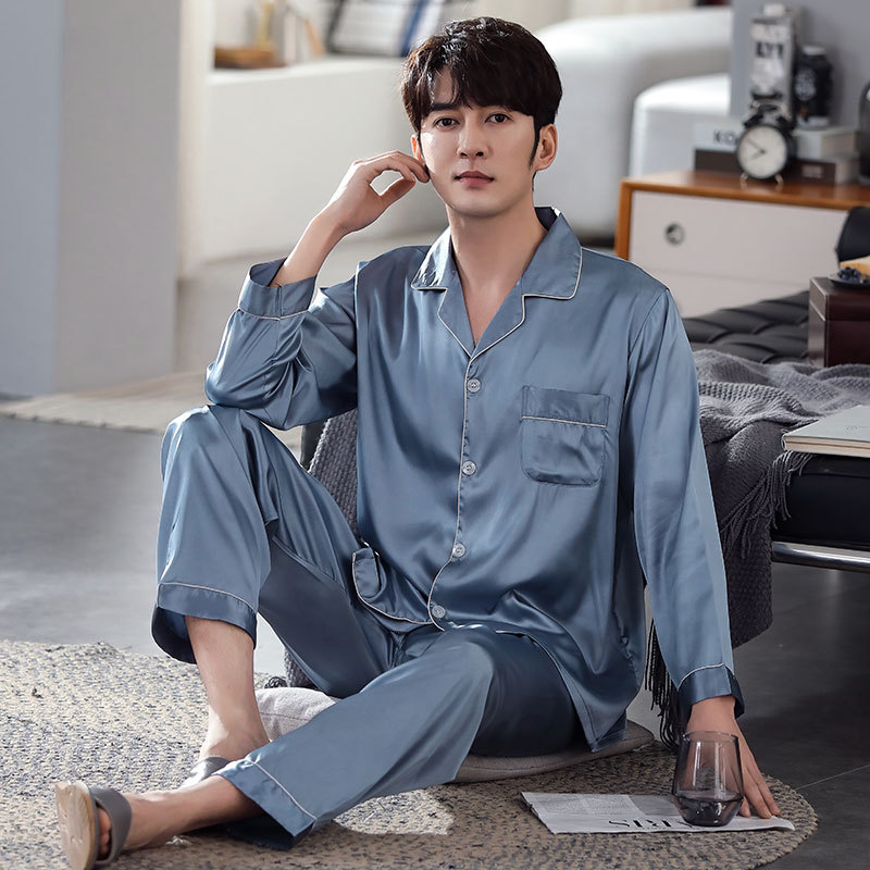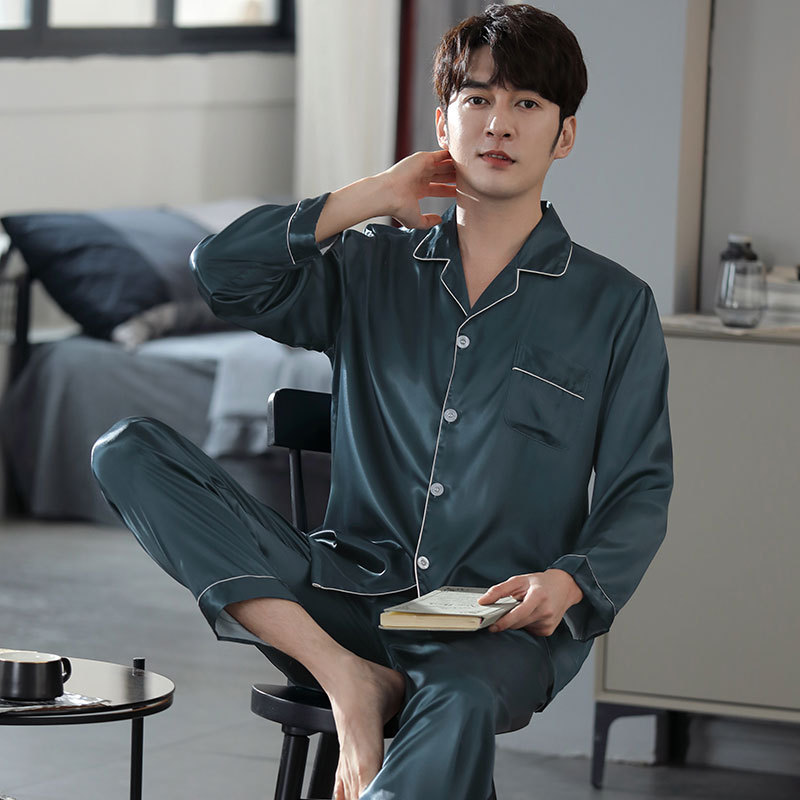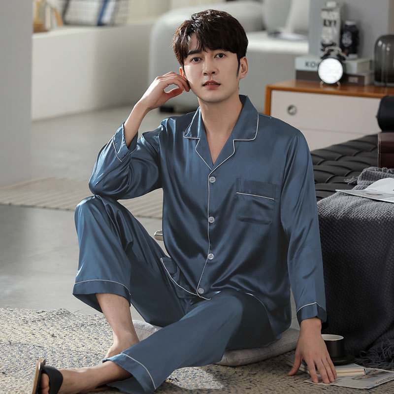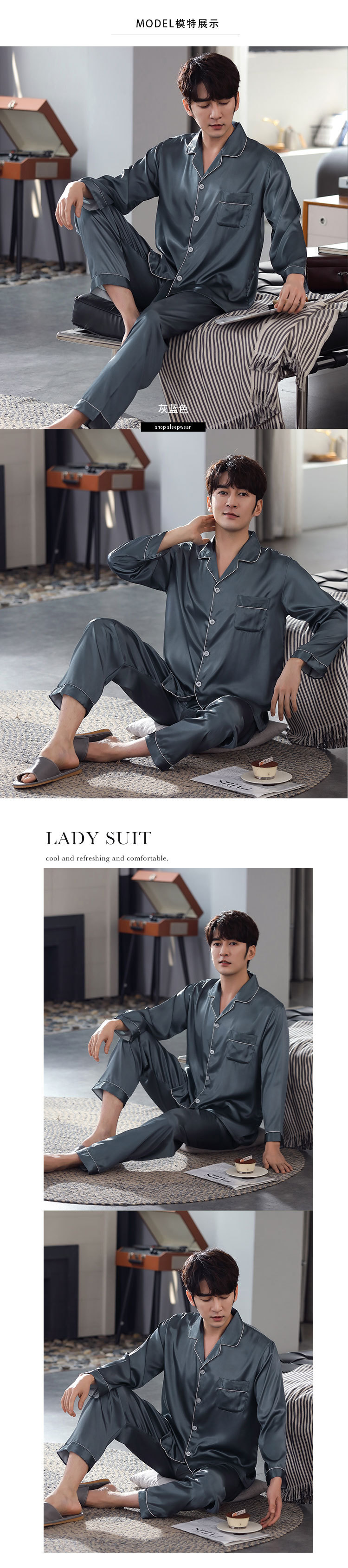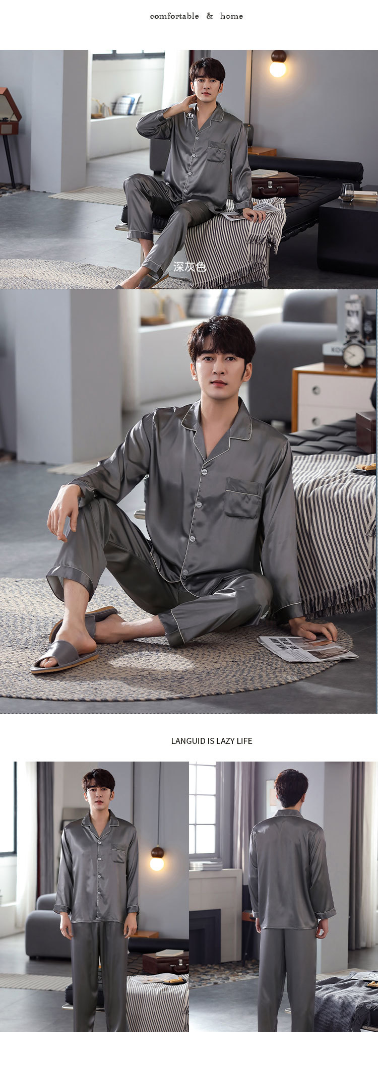 한 야통 커플 잠옷 카디건 세트 새틴 아이스 실크 봄과 여름 남성과 여성을위한 새로운 솔리드 컬러 의상스토어 가기
