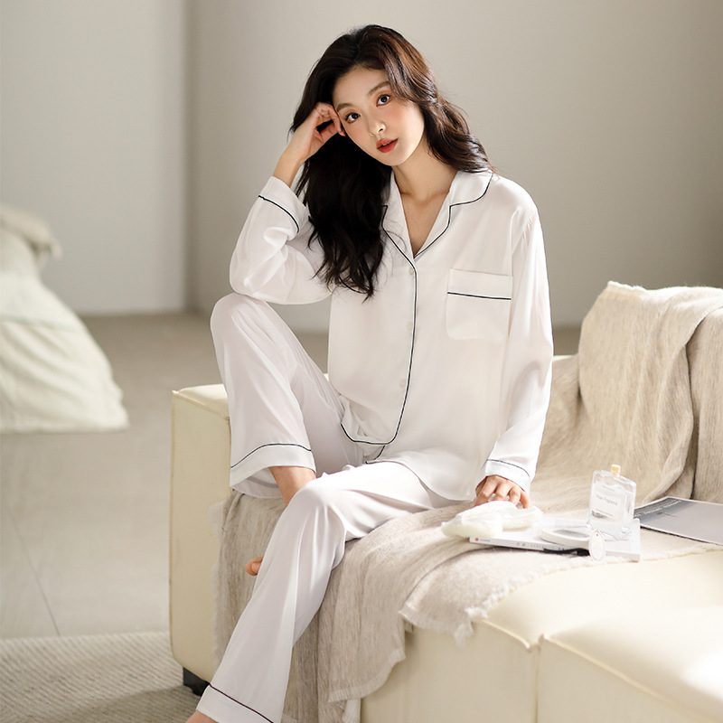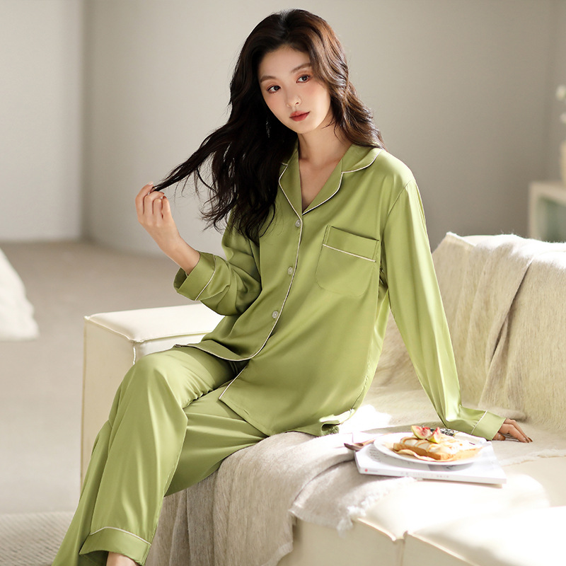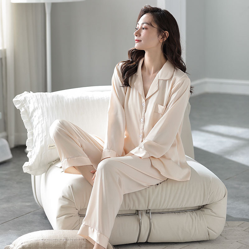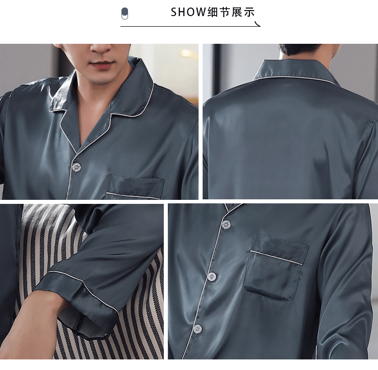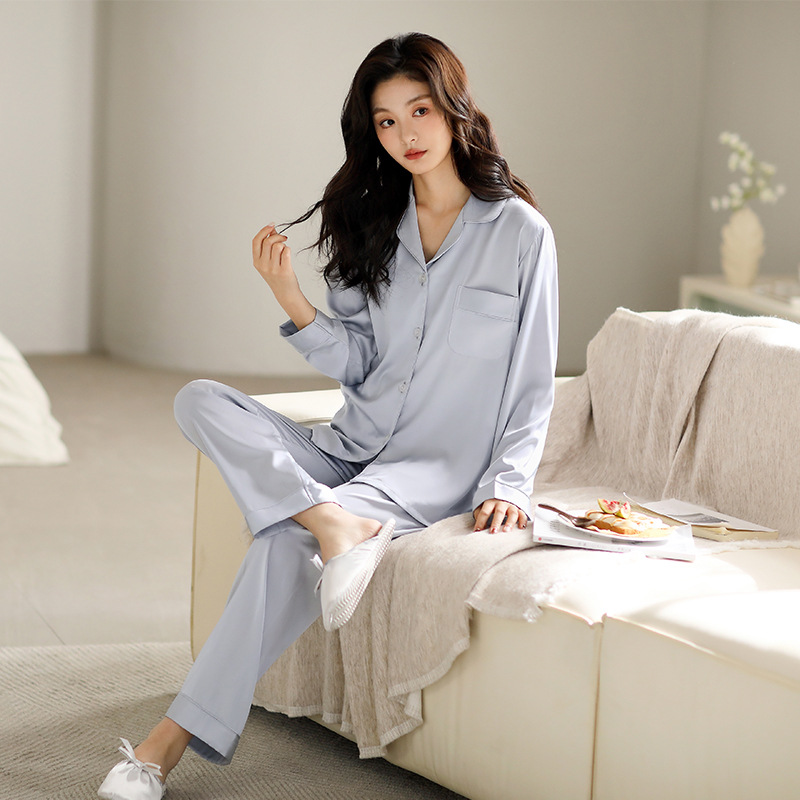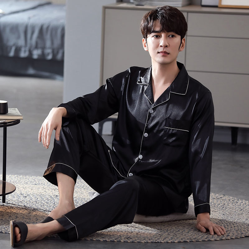 한 야통 커플 잠옷 카디건 세트 새틴 아이스 실크 봄과 여름 남성과 여성을위한 새로운 솔리드 컬러 의상스토어 가기