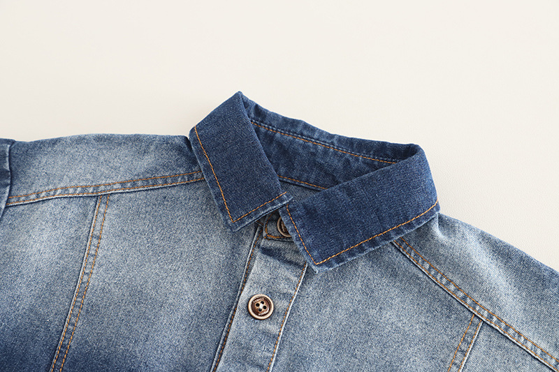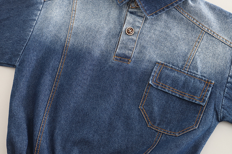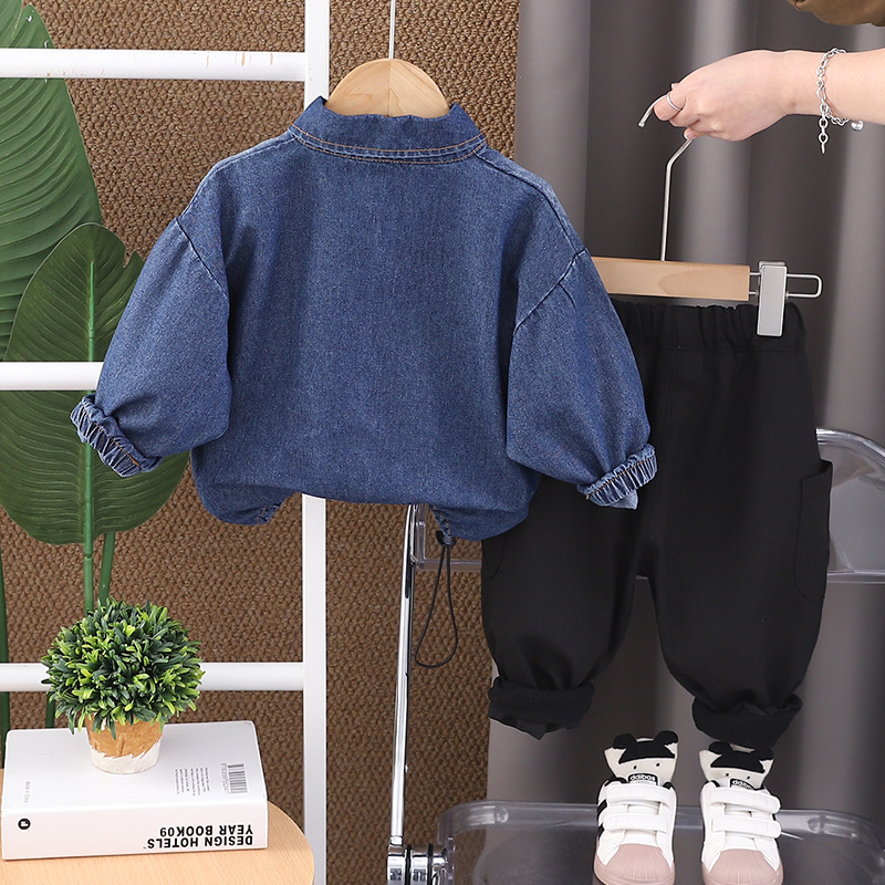 2025 새로운 외국 스타일의 어린이 유행 아기 봄과 가을 데님 그라디언트 긴 소매 투피스 소년의 봄 세트
