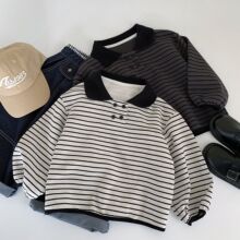 麦宝儿童卫衣2025秋季新款韩版男女童条纹长袖POLO衫上衣小童秋装