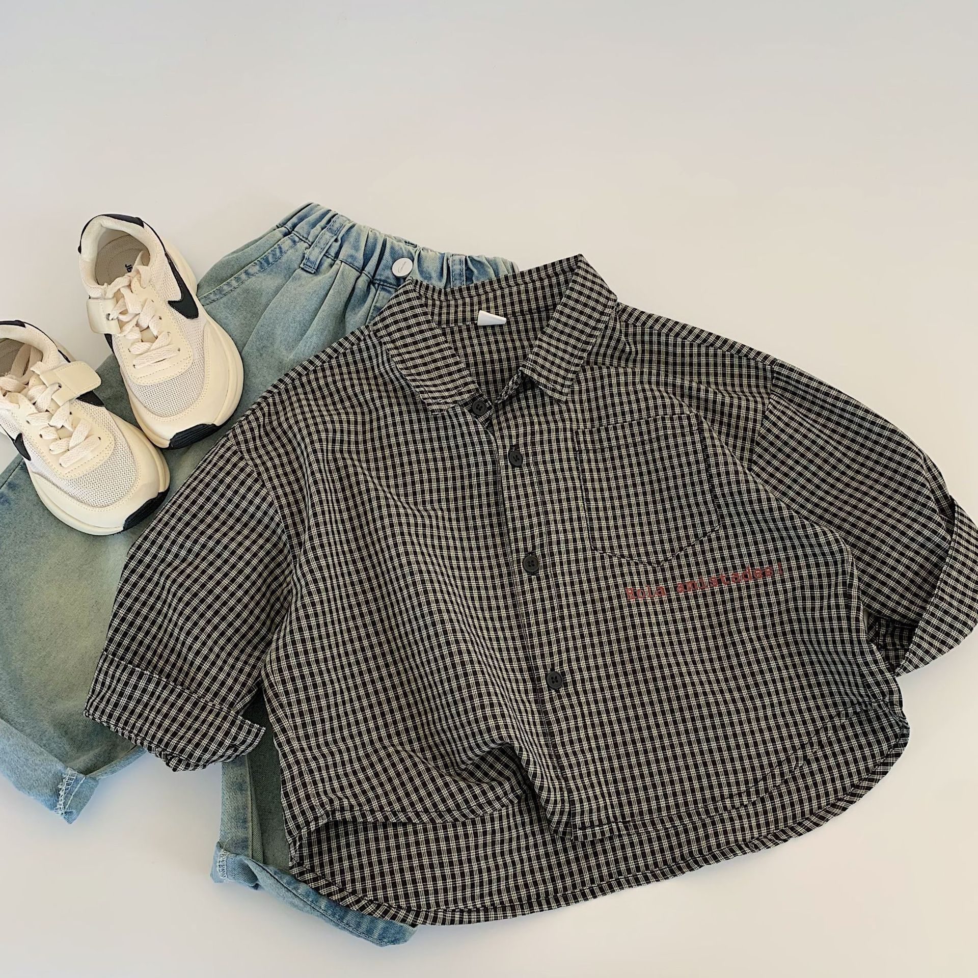 Mai Bao 아동 셔츠 2025 가을 복고풍 스타일 패턴 소년 캐주얼 긴팔 카디건 새로운 봄, 가을 셔츠 트렌드