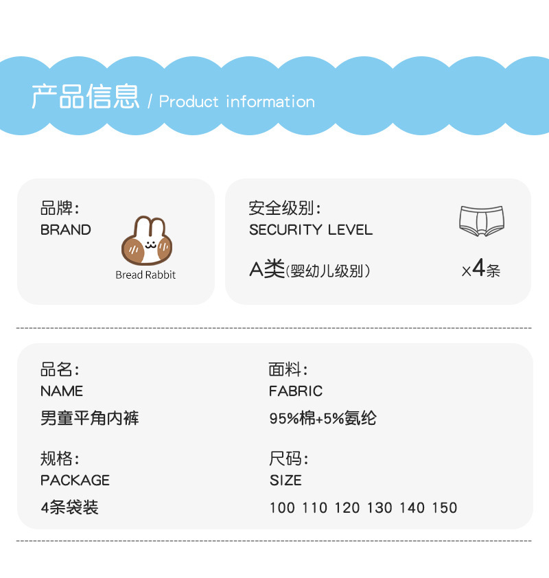 MXBN5030 봄 새로운 어린이 속옷 클래스 아기 원활한 복서 속옷 소년면 반바지 도매