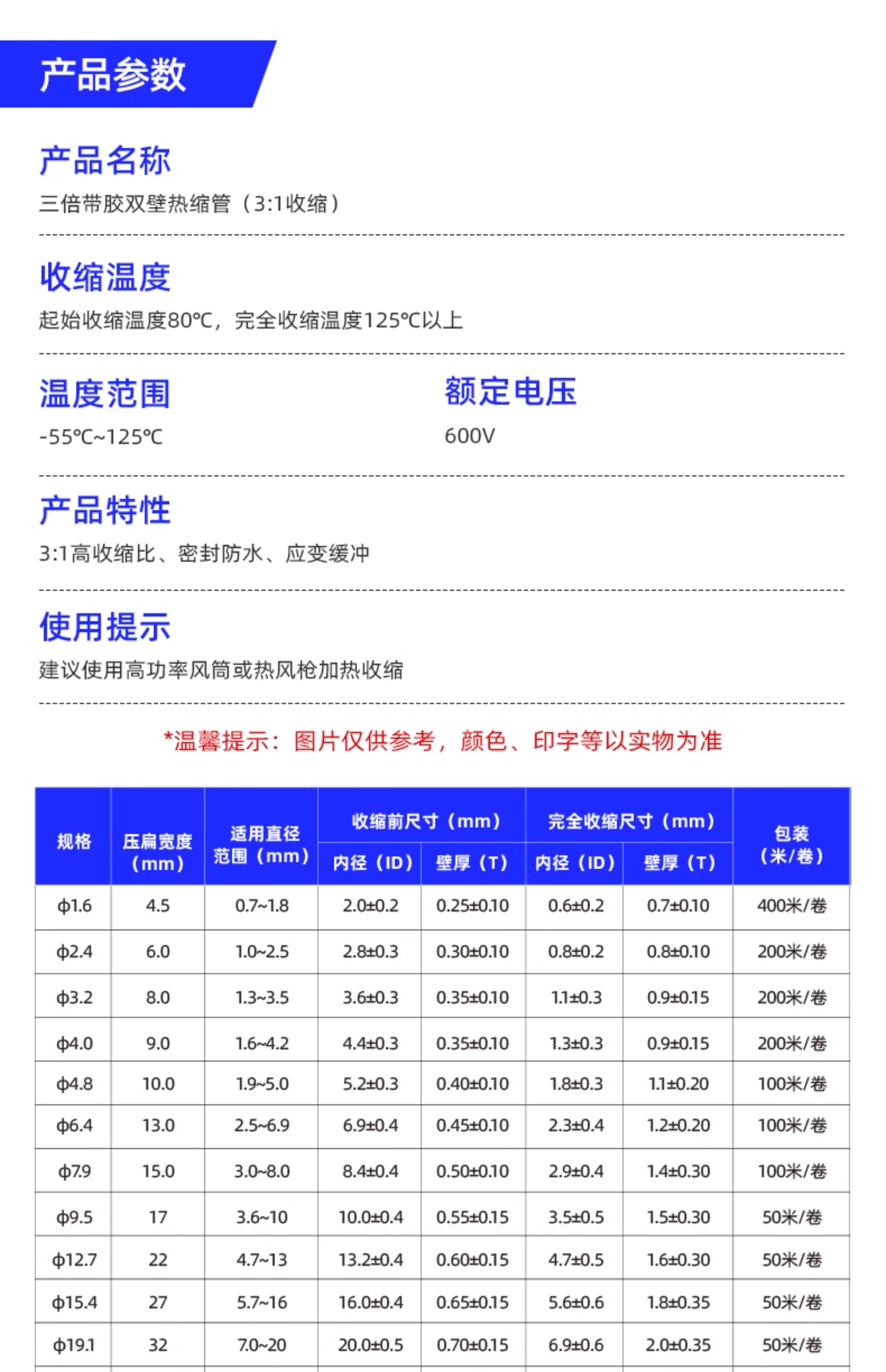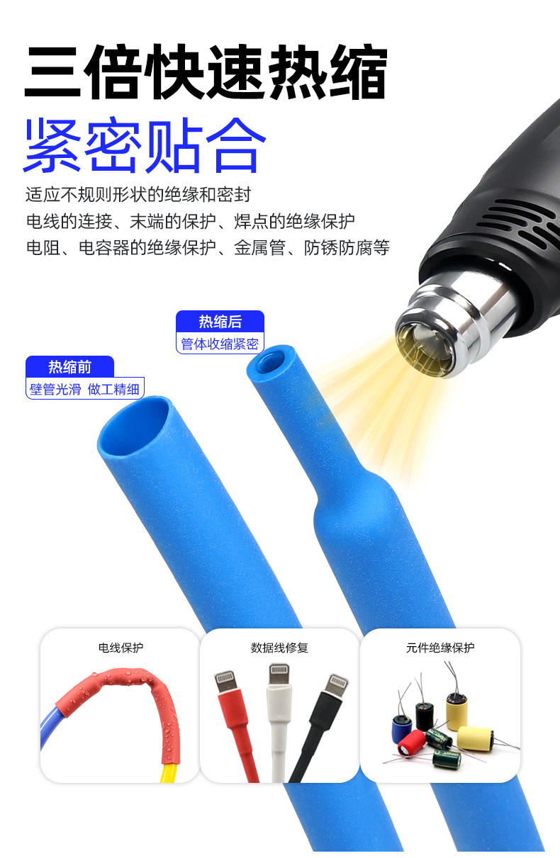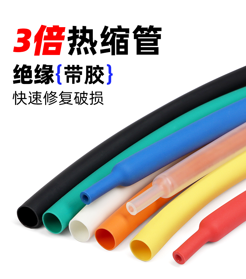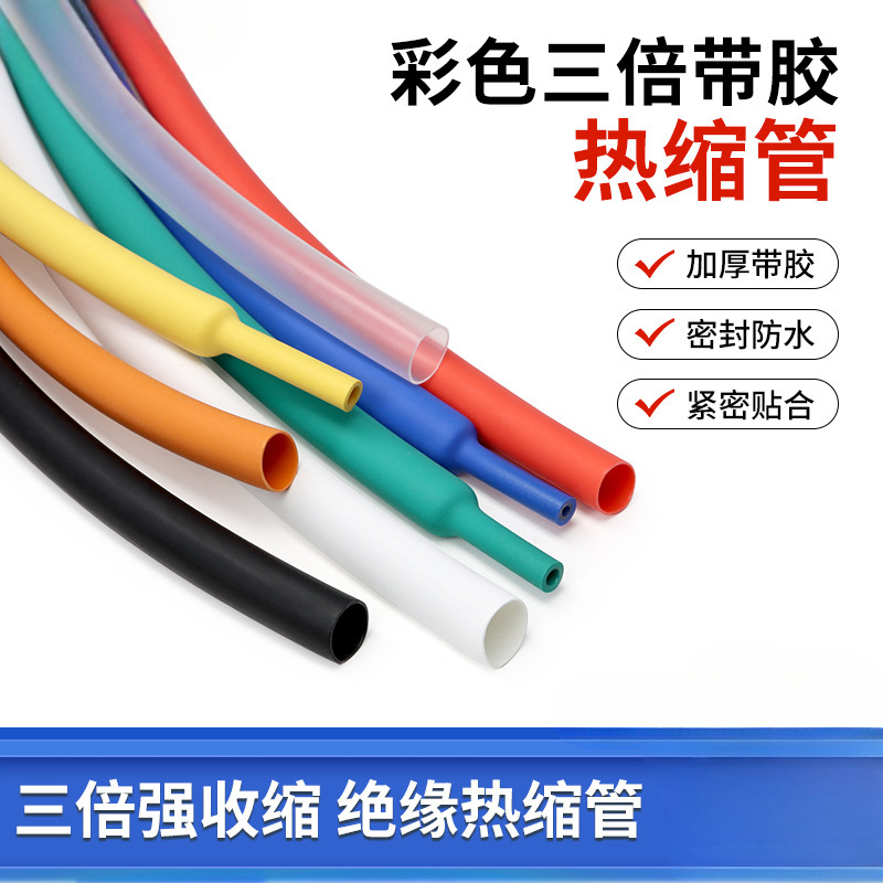 접착제가있는 3 배 열 수축 튜브 두꺼운 3 배 이중 벽 튜브 와이어 수리 방수 컬러 전기 배선 절연 슬리브스토어 가기