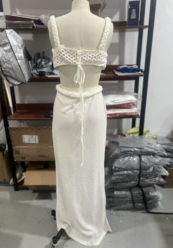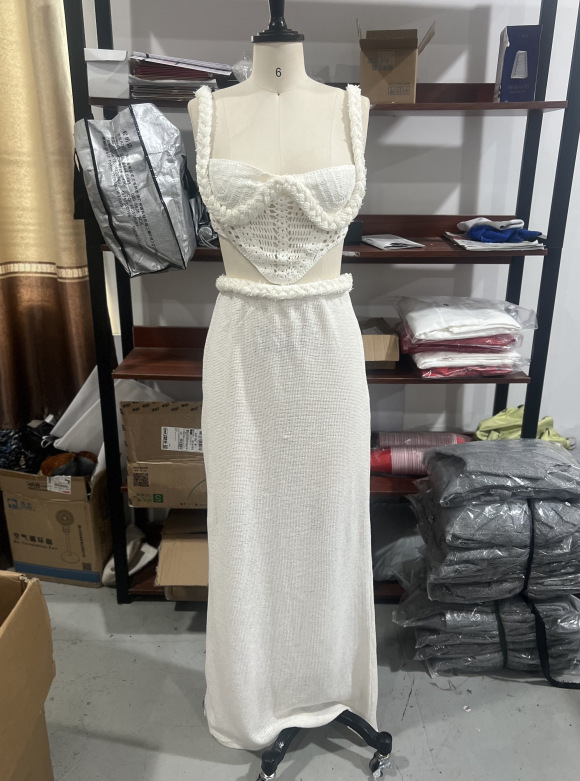 2025 년 여름 여성 국경 간 AliExpress 폭발 섹시한 니트 짧은 스트랩 배꼽 원피스 세트