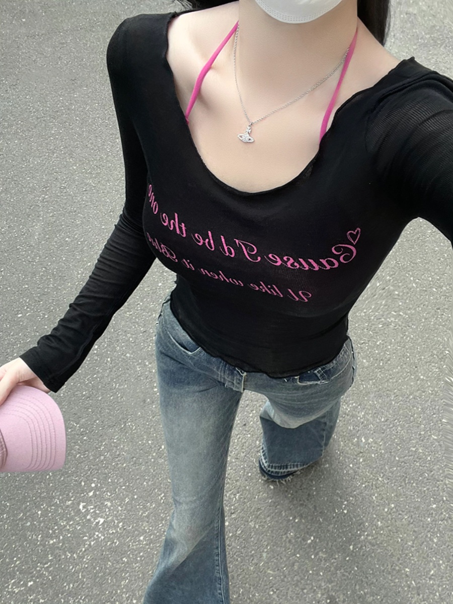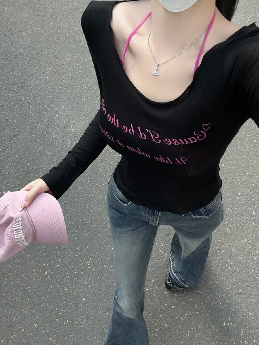 핫 탑 유럽과 미국의 핫 걸 슬링 긴팔 티셔츠 여성용 투피스 봄과 가을웨어 슬림 핏 디자인 센스 니쉬스토어 가기
