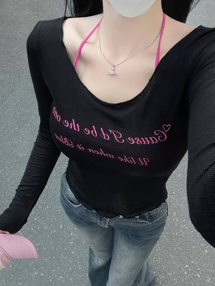 핫 탑 유럽과 미국의 핫 걸 슬링 긴팔 티셔츠 여성용 투피스 봄과 가을웨어 슬림 핏 디자인 센스 니쉬