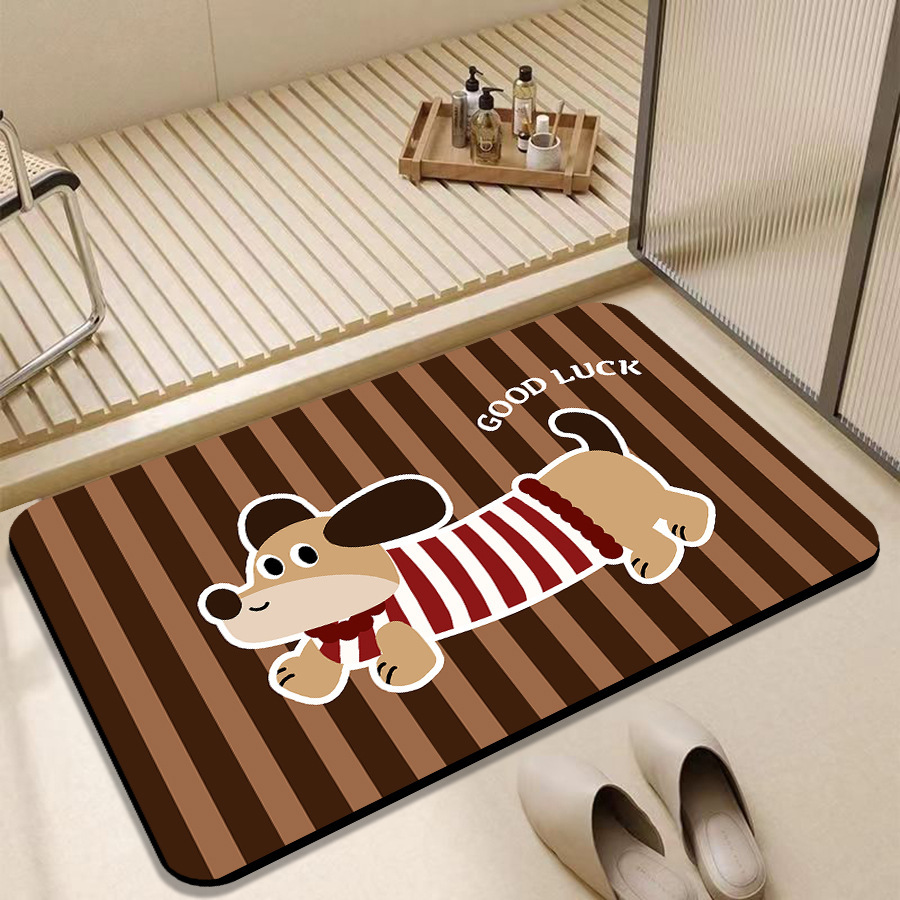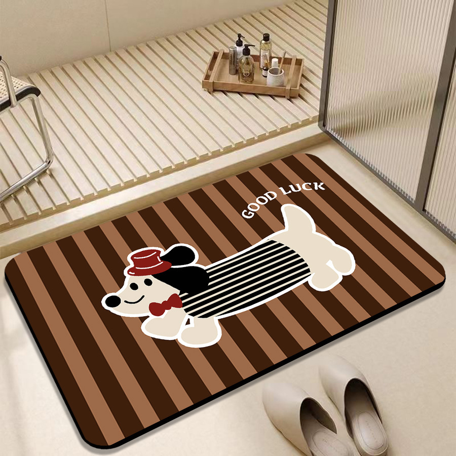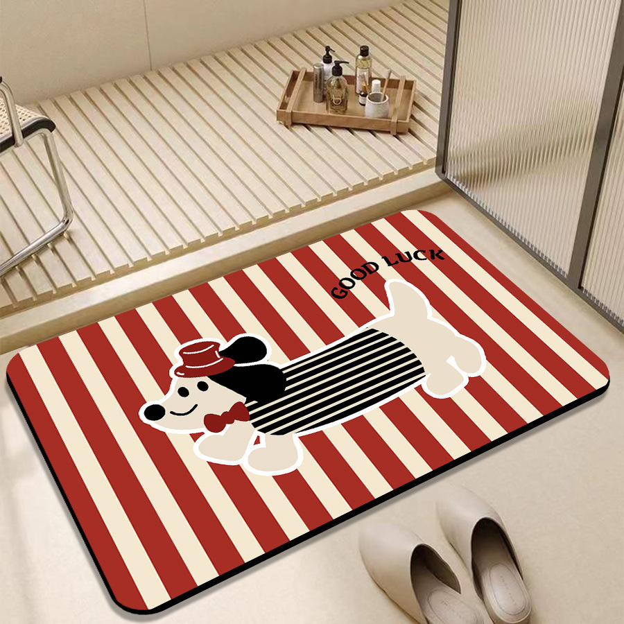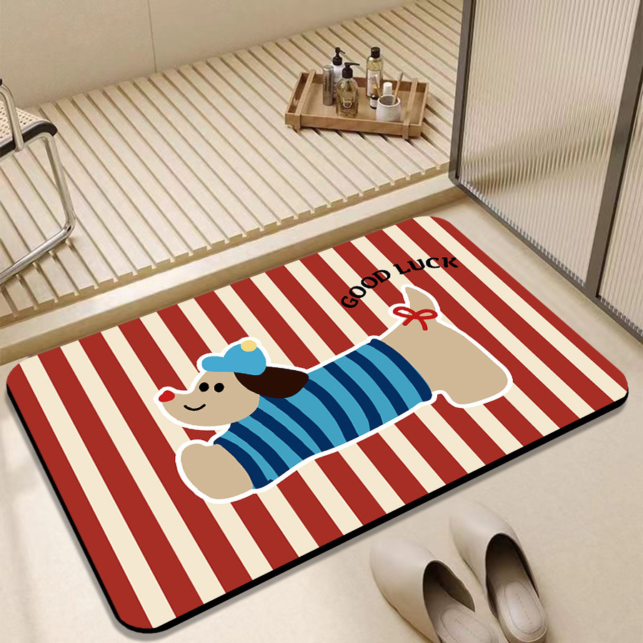 만화 수직 줄무늬 닥스 훈트 욕실 바닥 매트 가정용 Diatom 진흙 식용 변기 물 흡수성 빠른 건조 발 매트스토어 가기