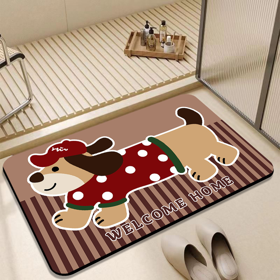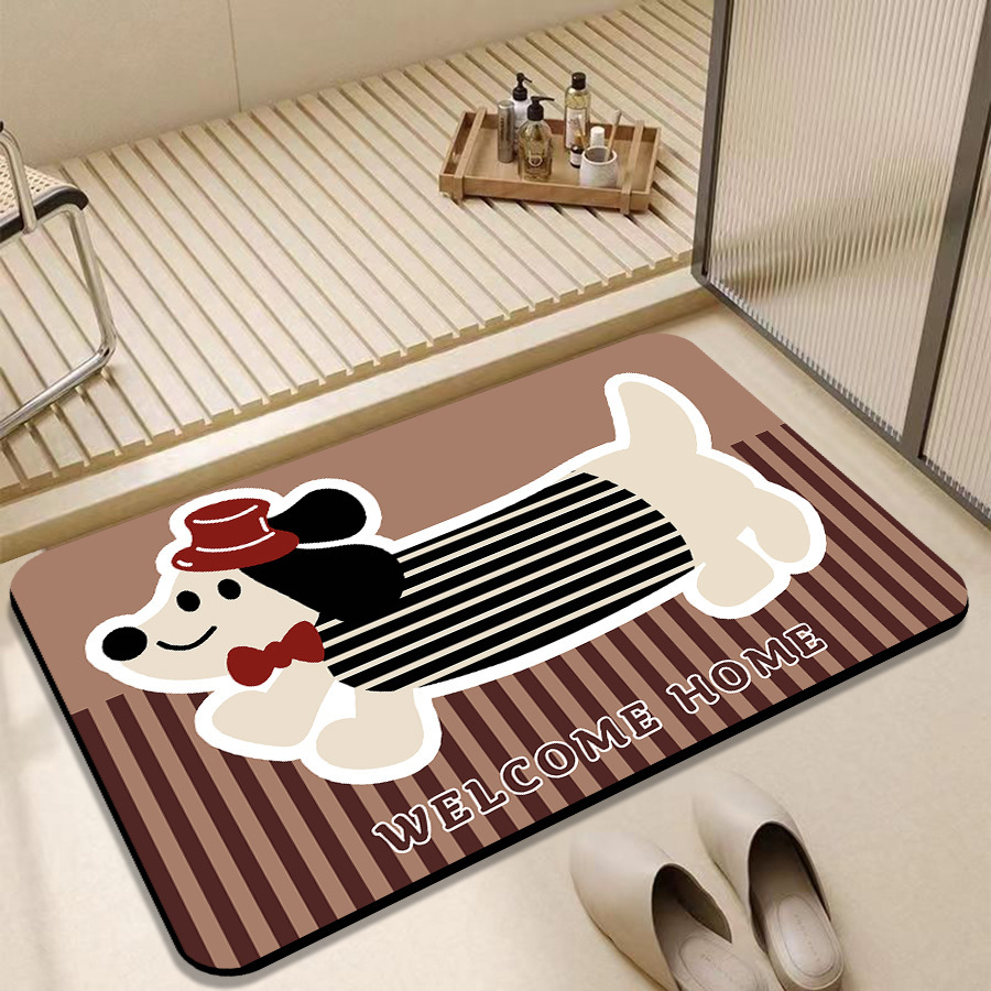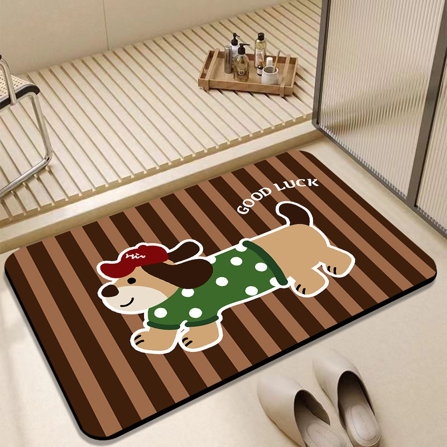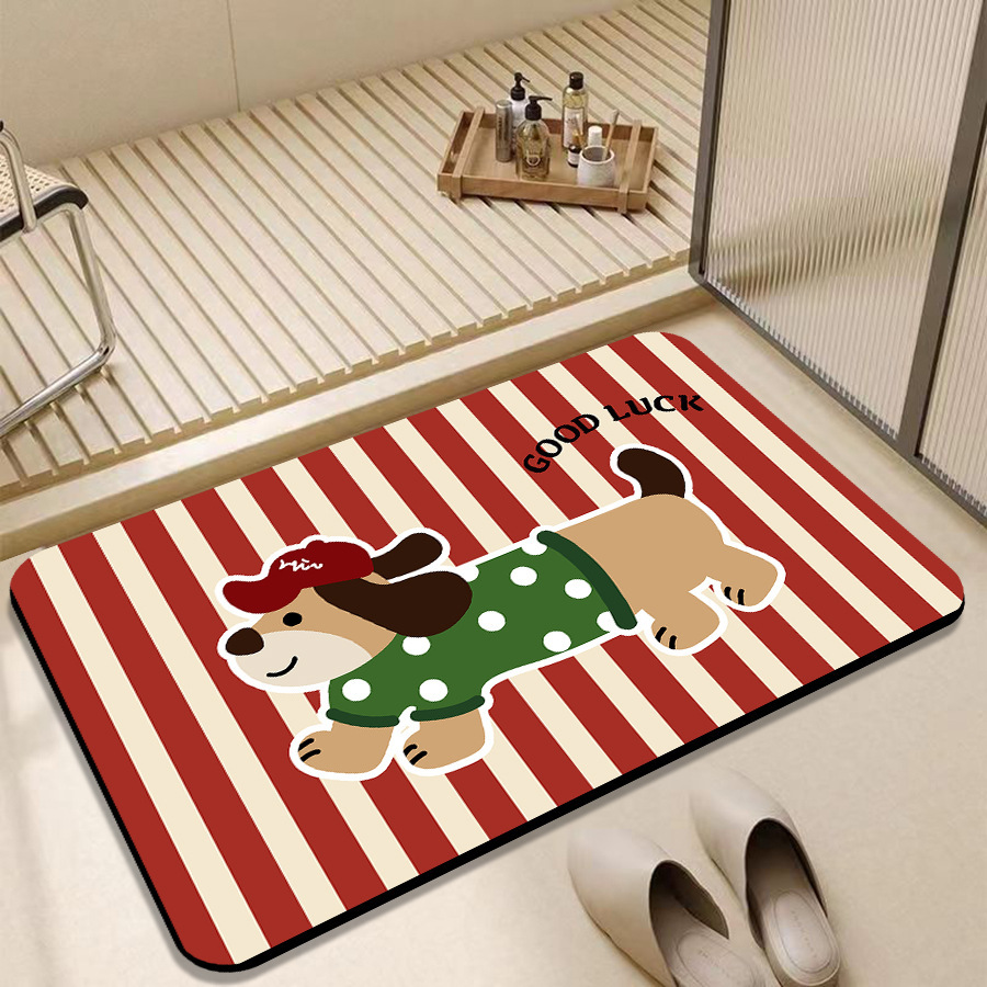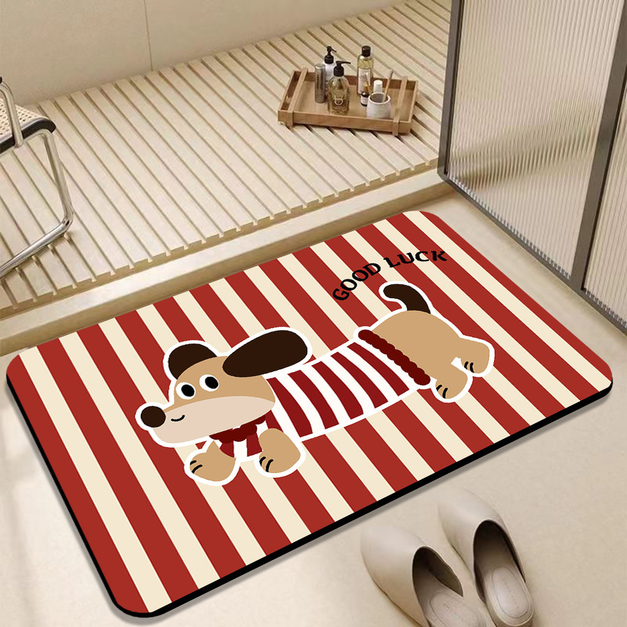 만화 수직 줄무늬 닥스 훈트 욕실 바닥 매트 가정용 Diatom 진흙 식용 변기 물 흡수성 빠른 건조 발 매트스토어 가기