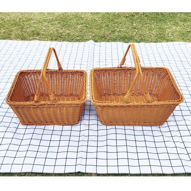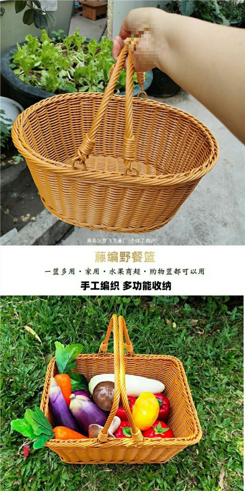 등나무 과일 바구니 따기 보관 바구니 쇼핑 바구니 등나무 입 반지 철 철사 손 바구니를 구입 야채 피크닉 바구니