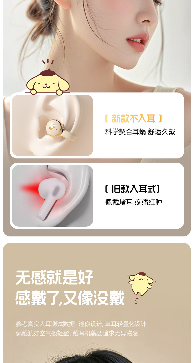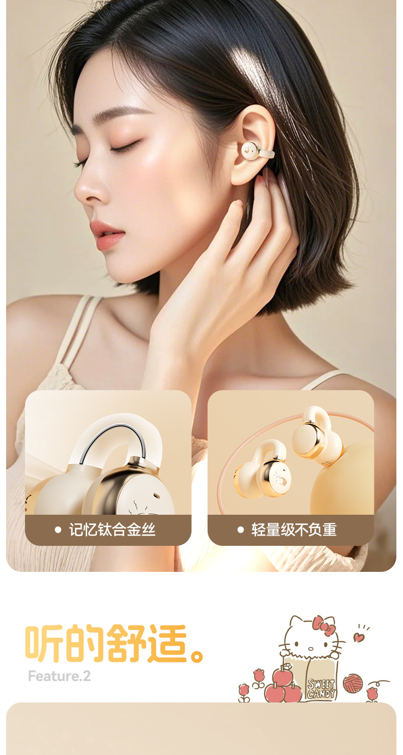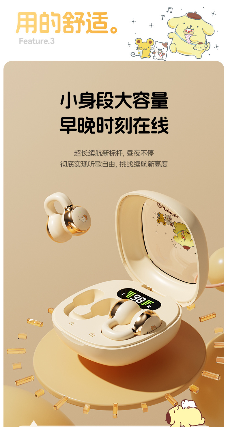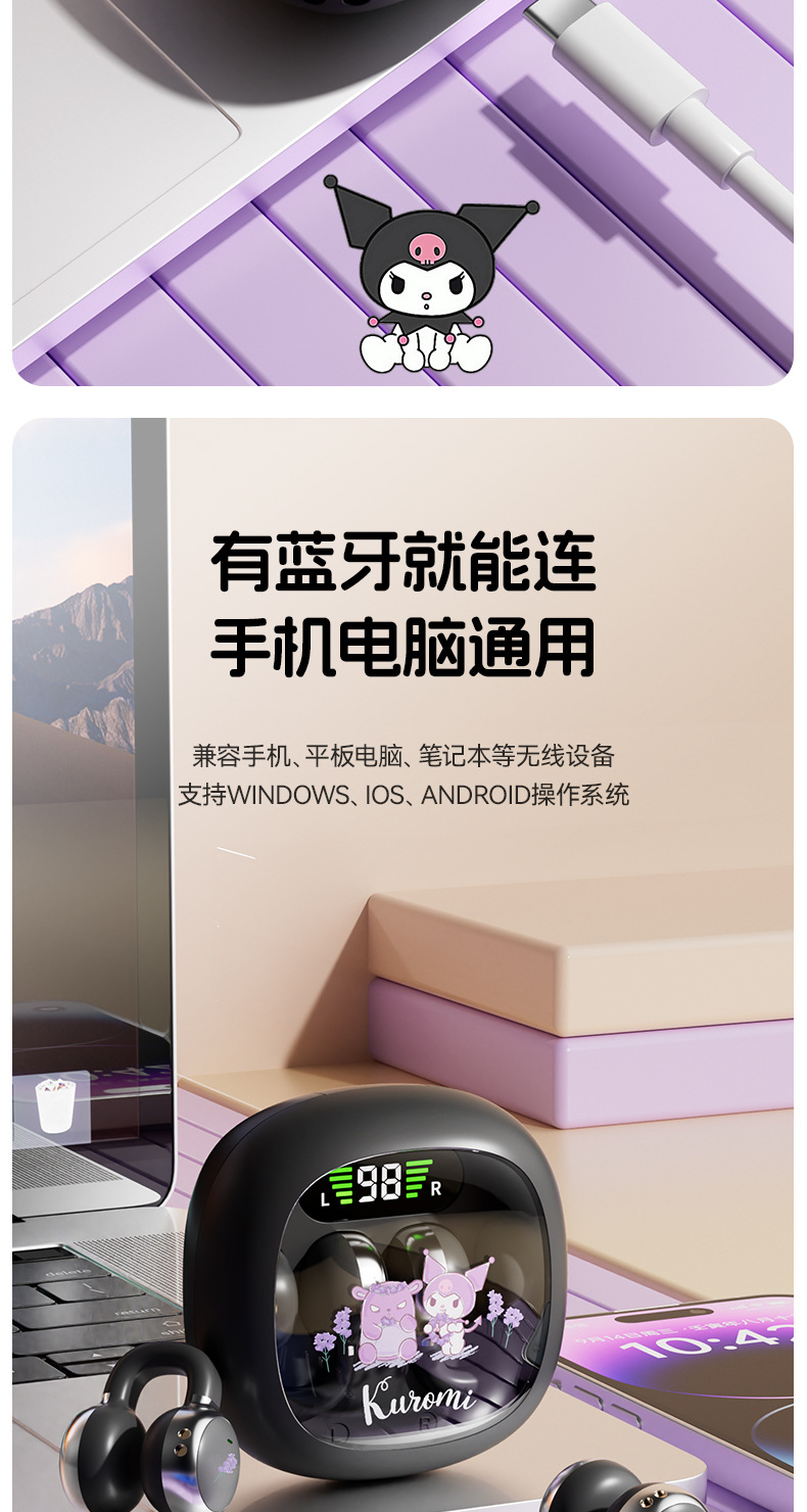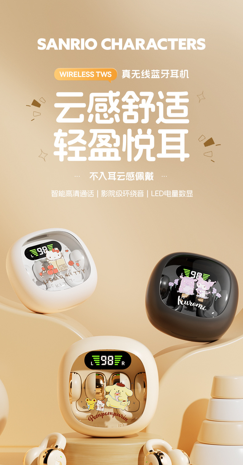 새로운 산리오 귀 클립 무선 블루투스 헤드셋 디지털 디스플레이 투명 만화 헤드셋 긴 내구성 선물 X31