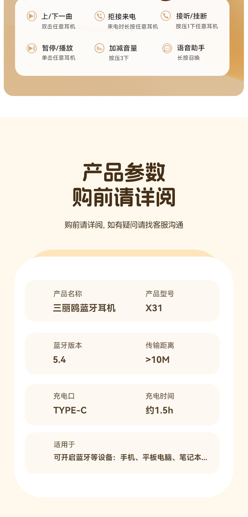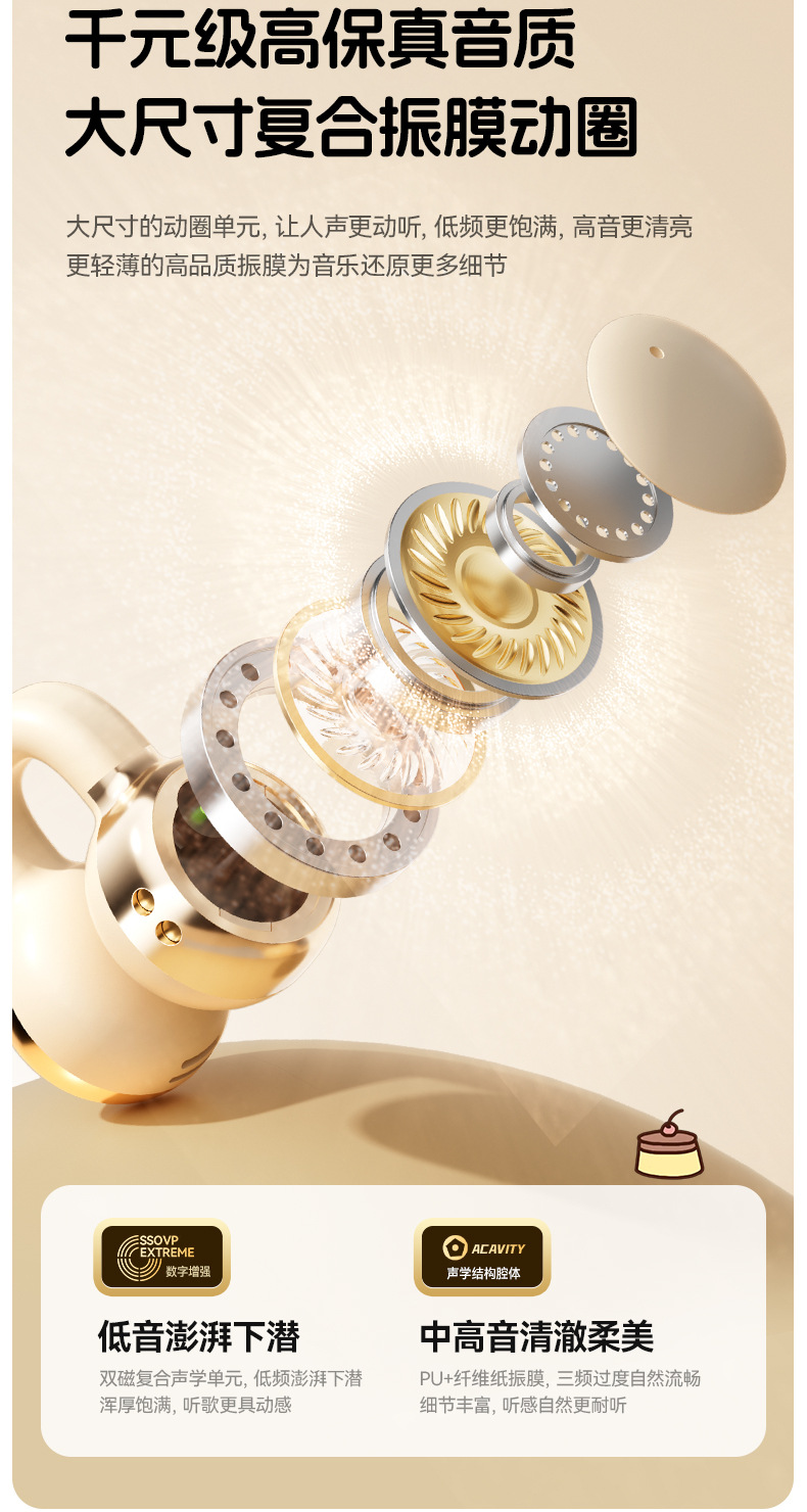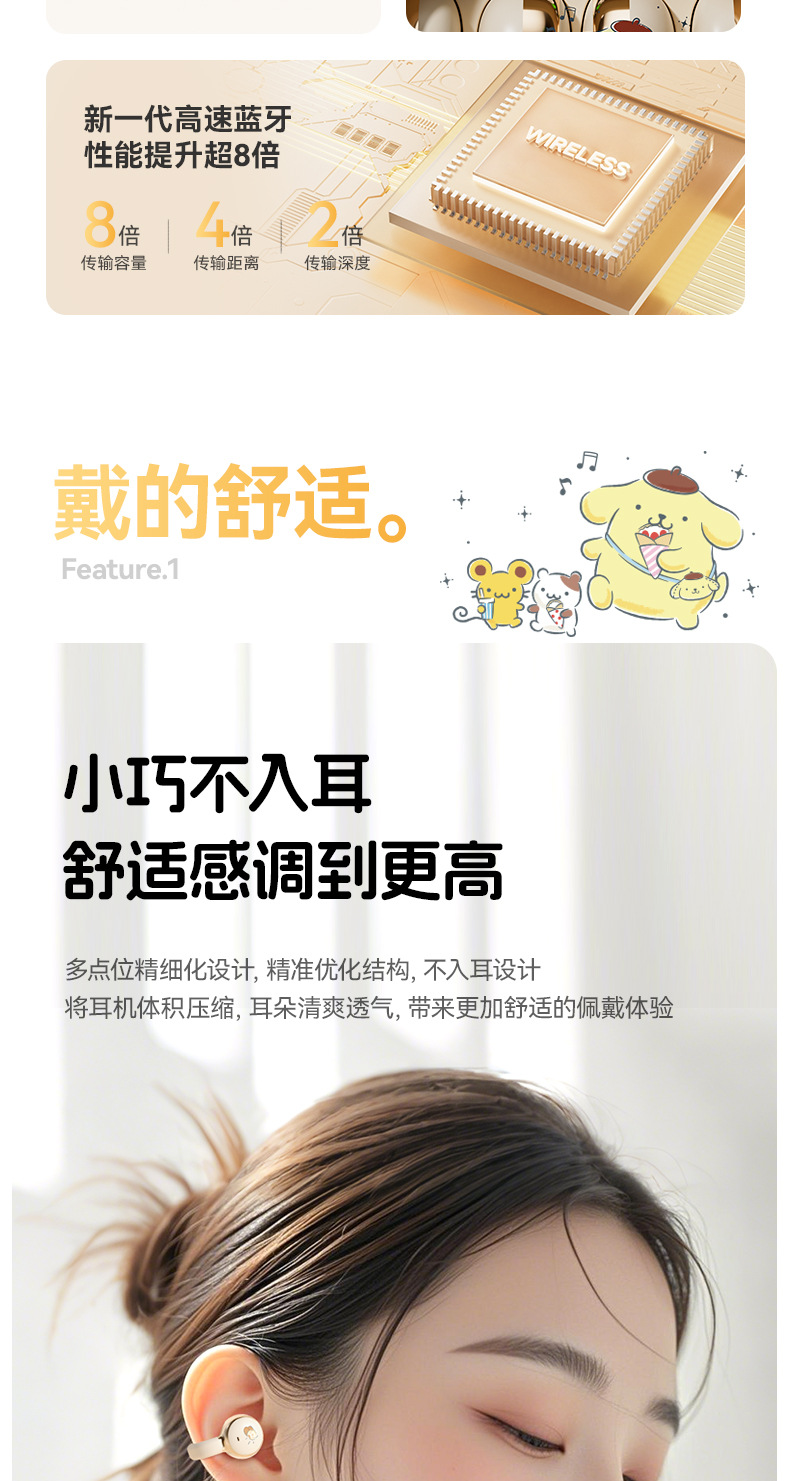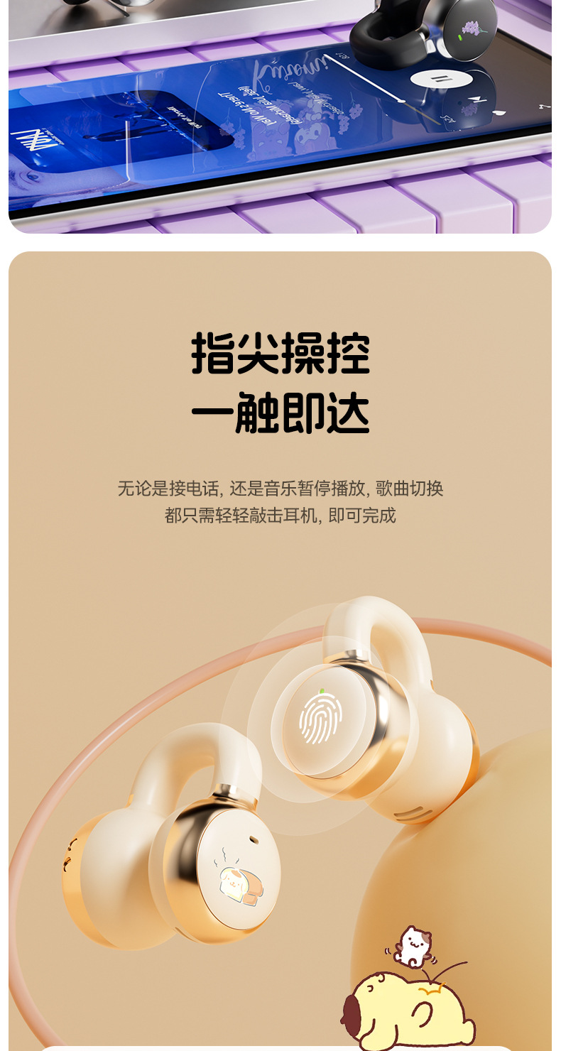 새로운 산리오 귀 클립 무선 블루투스 헤드셋 디지털 디스플레이 투명 만화 헤드셋 긴 내구성 선물 X31