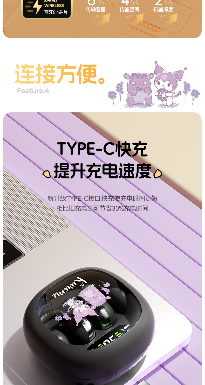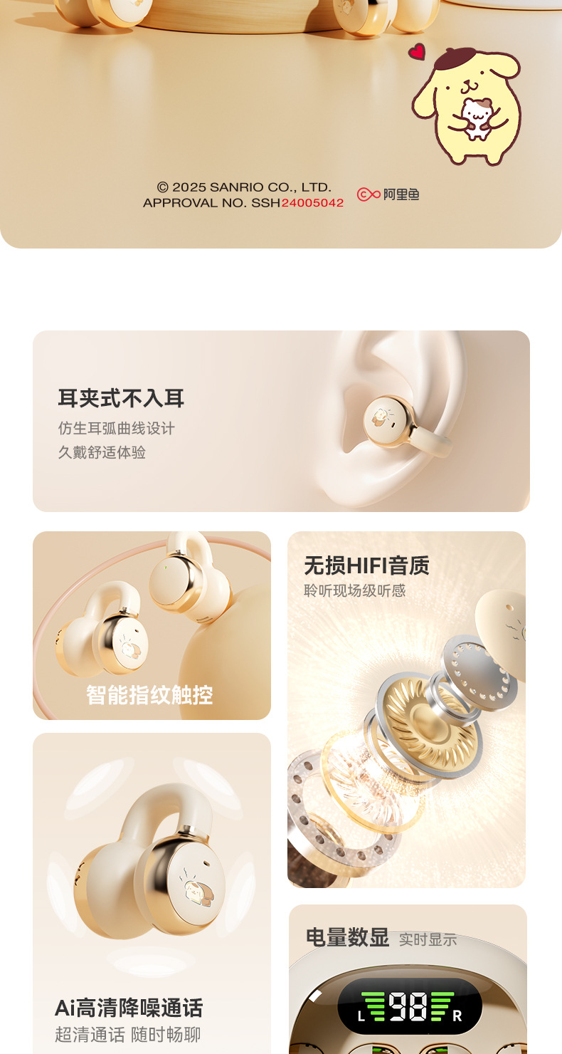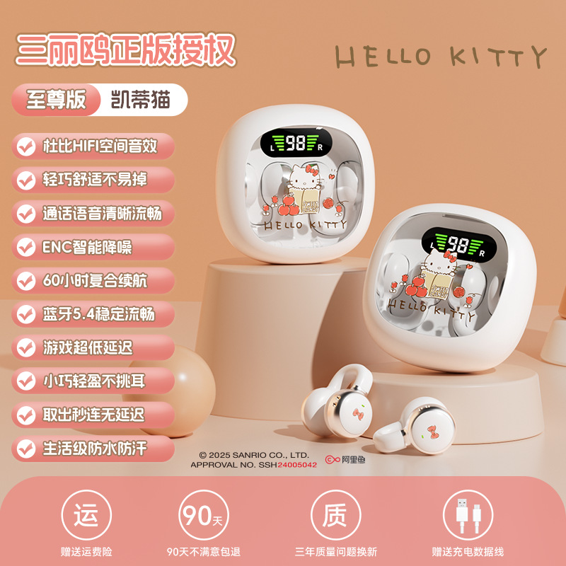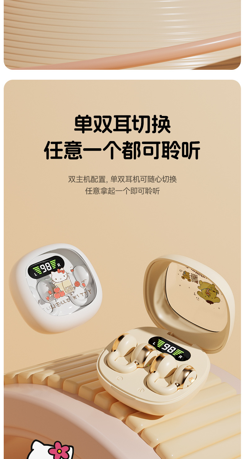 새로운 산리오 귀 클립 무선 블루투스 헤드셋 디지털 디스플레이 투명 만화 헤드셋 긴 내구성 선물 X31스토어 가기