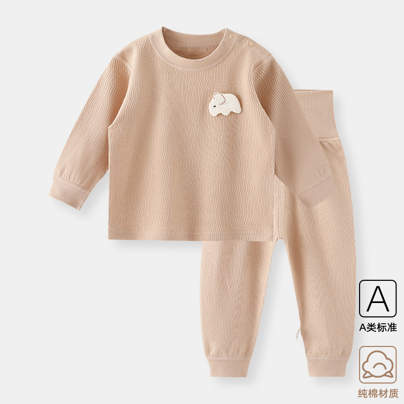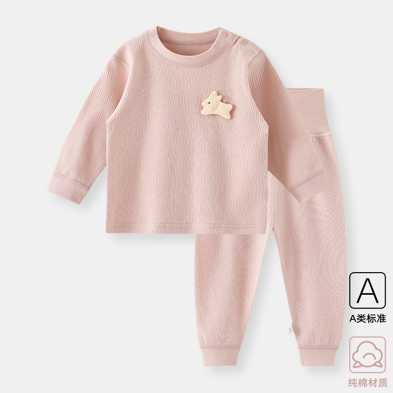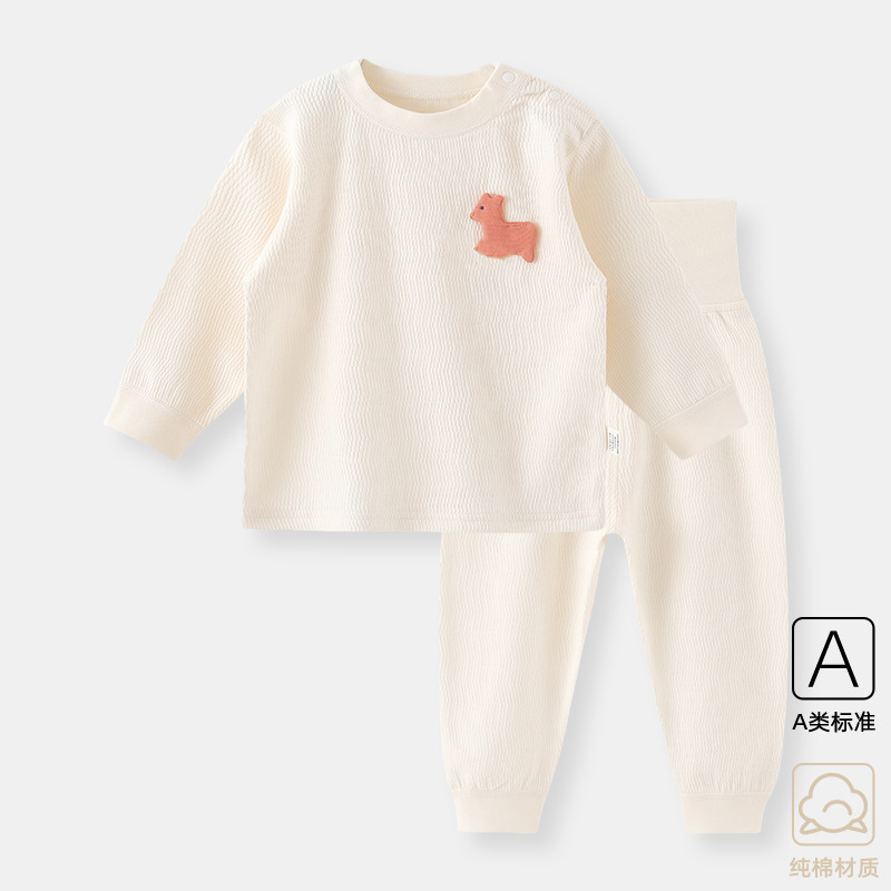 아기의 가을 옷 바지 세트 남녀 배꼽 보호 속옷 분할 잠옷 아기의 봄과 가을 옷 높은 허리 면화