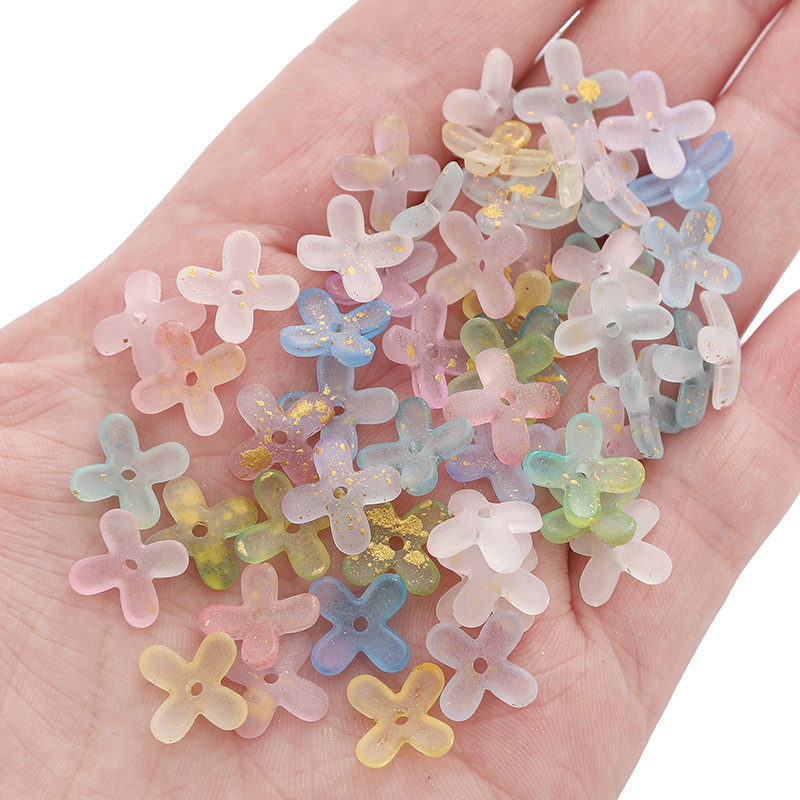 아크릴 9mm 포인트 골드 4 꽃잎 꽃 수제 DIY 손으로 구슬 귀걸이 팔찌 목걸이 액세서리 느슨한 구슬 소재 가방스토어 가기