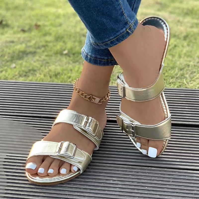 겉옷 슬리퍼 여성용 국경 플러스 사이즈 2025 년 여름 새 샌들 벨트 버클 캐주얼 비치 플랫 샌들