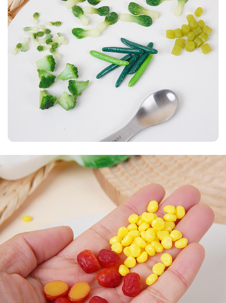 PVC 소형 음식 장난감 DIY 수제 달팽이 국수 냄비 재료 액세서리 놀이 집 장난감 수란 옥수수 야채스토어 가기