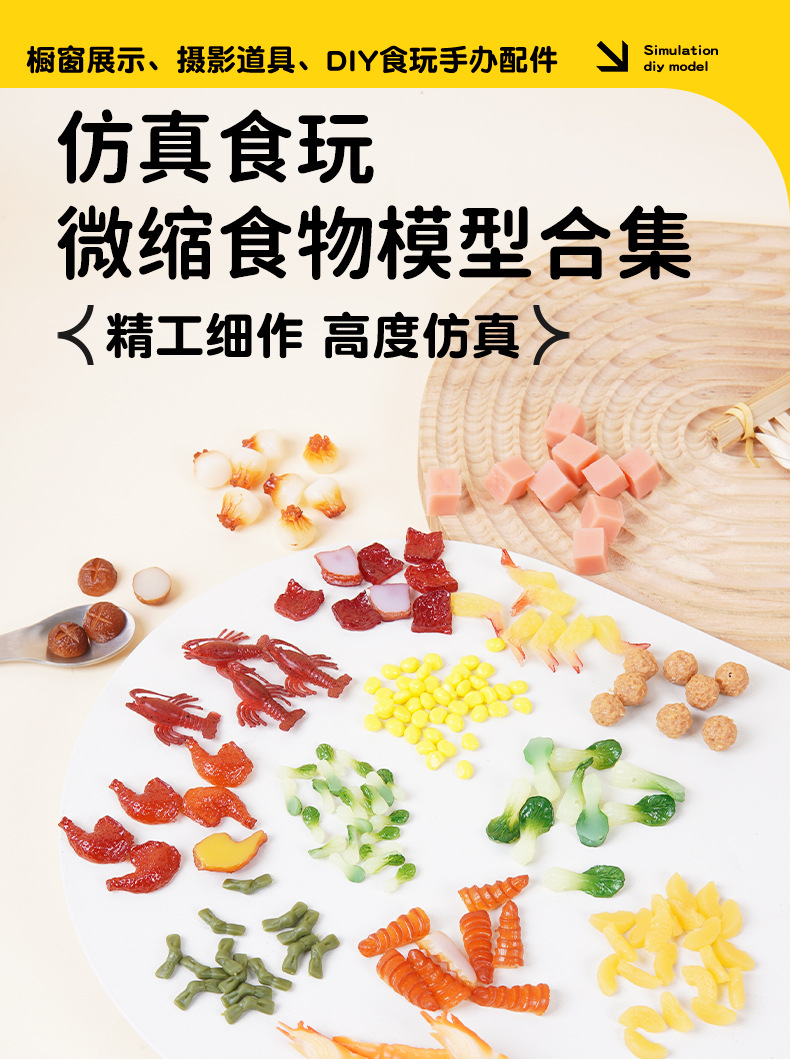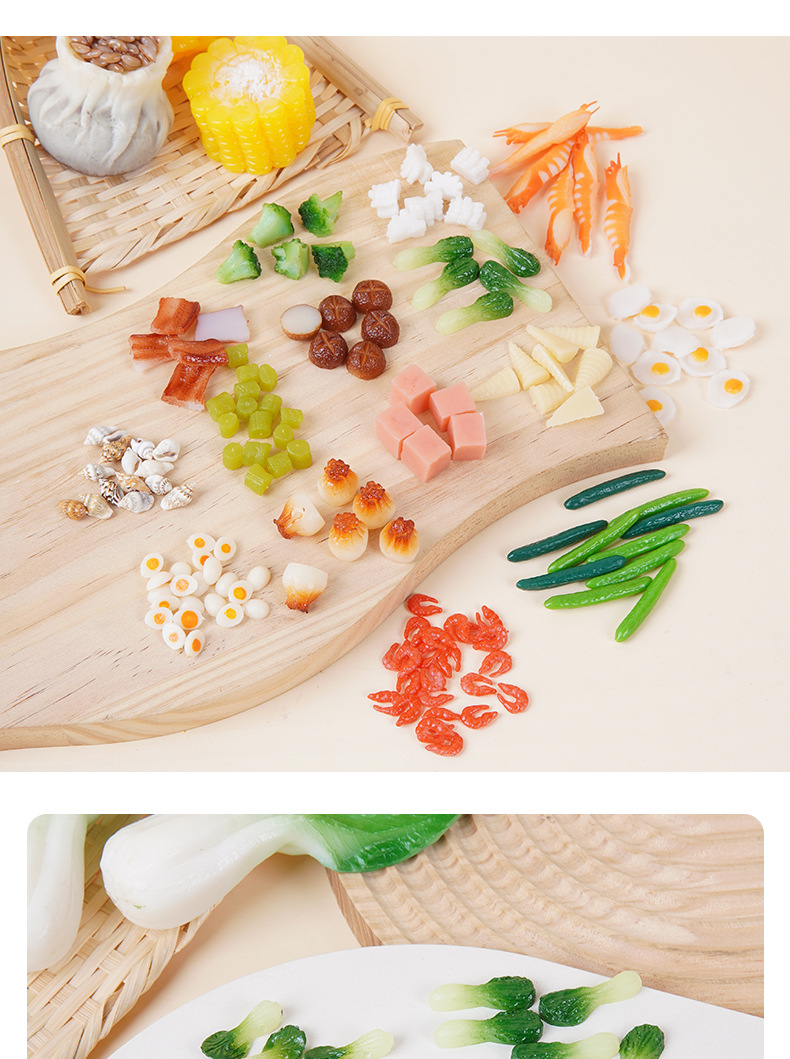 PVC 소형 음식 장난감 DIY 수제 달팽이 국수 냄비 재료 액세서리 놀이 집 장난감 수란 옥수수 야채