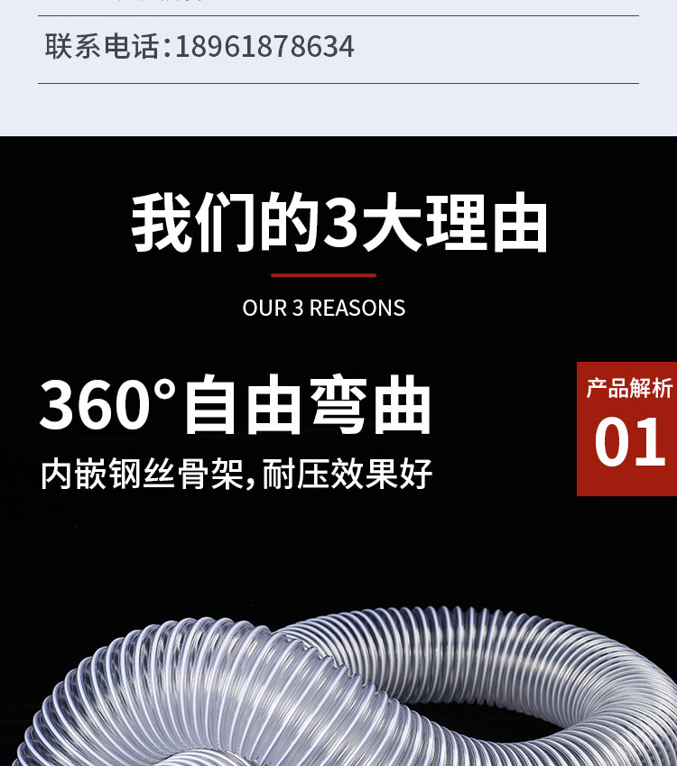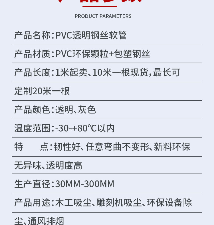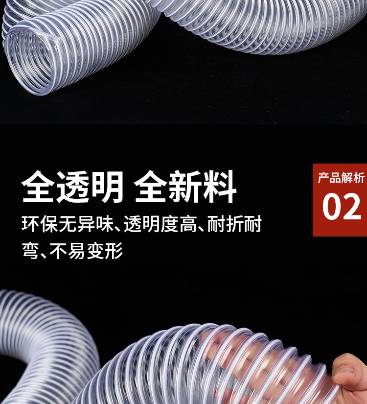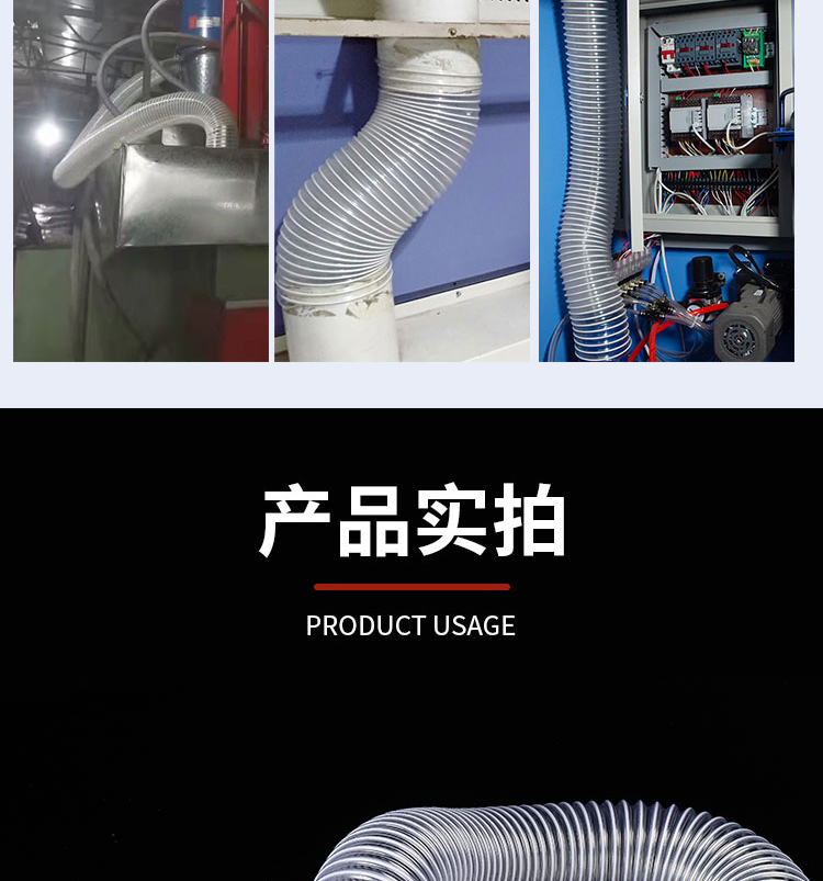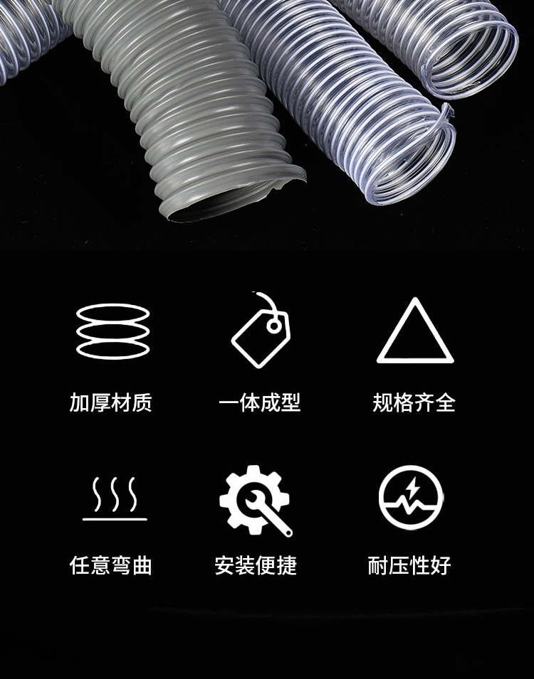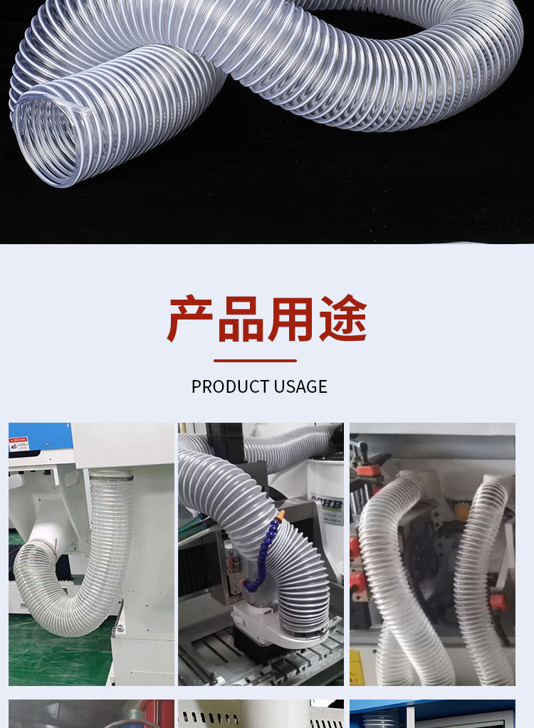 PVC 투명 진공 와이어 호스 조각 기계 목공 먼지 제거 회색 호스 벨로즈 호스 망원경 환기