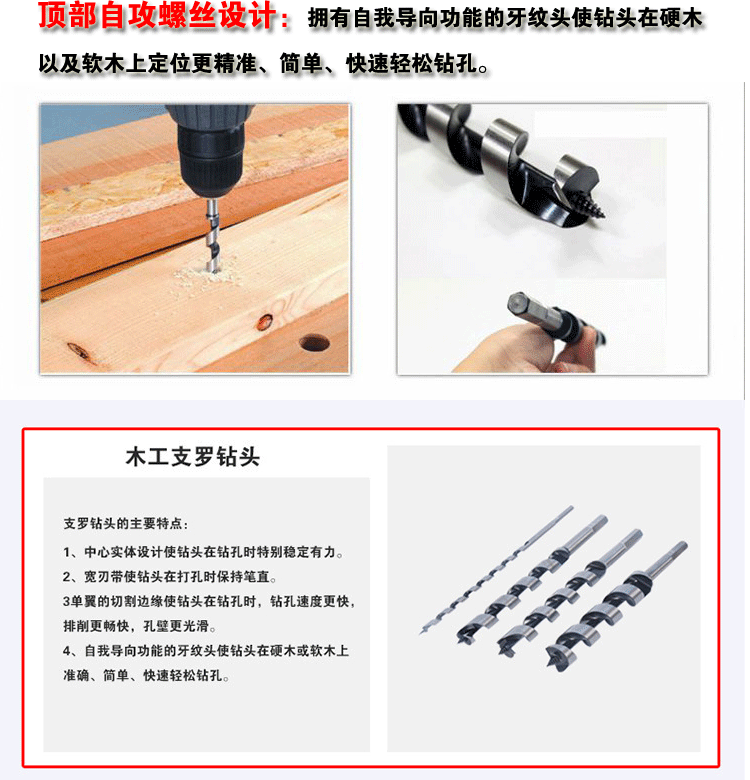 목공 드릴 양조 트위스트 드릴 브랜치 드릴 헤드 육각형 핸들 목공 도구 완전한 책 6 도어 패널 시추 810스토어 가기