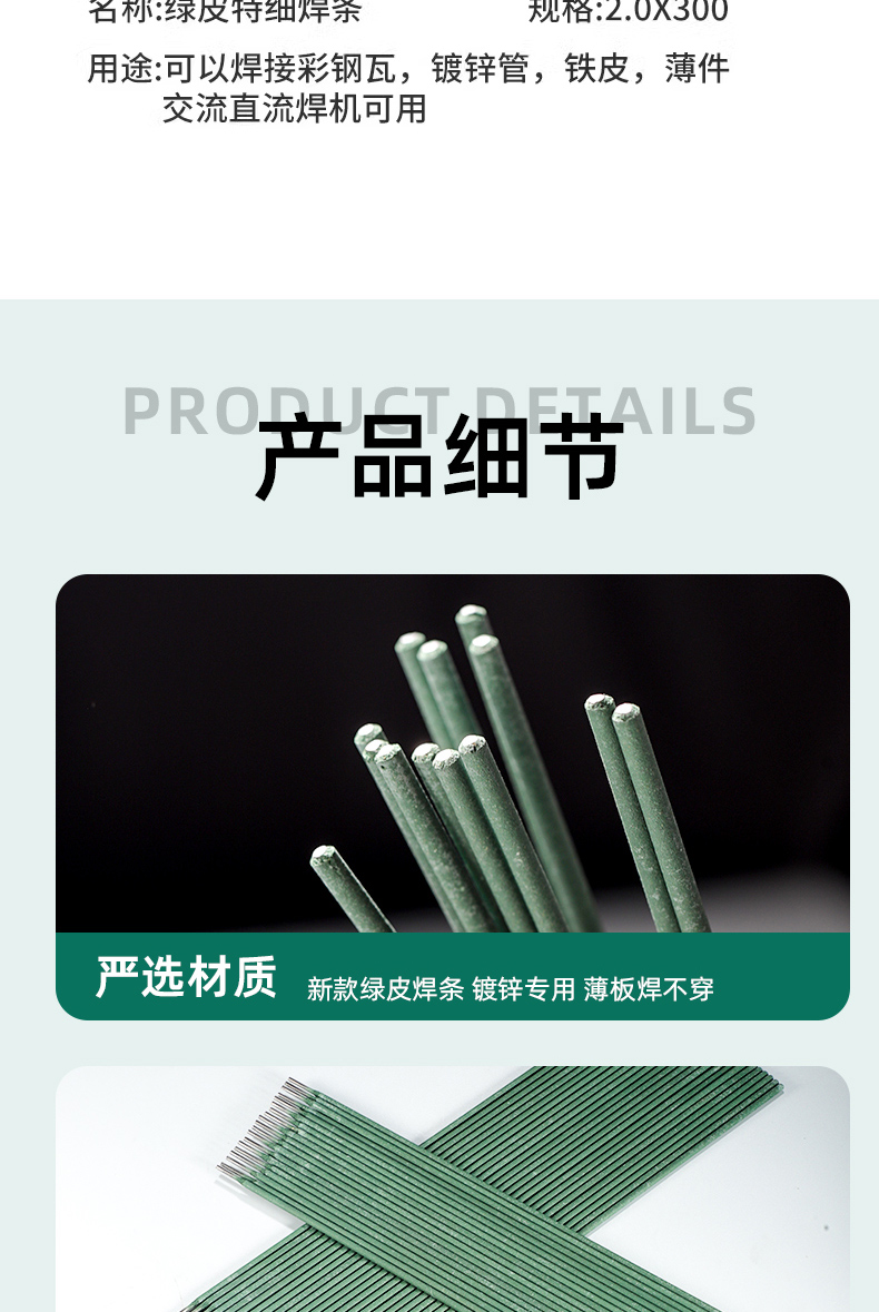 녹색 피부 전극 용접 철 시트 컬러 강철 아연 도금 파이프 특수 얇은 조각 여분의 미세 전극 J422 탄소강 전극 회색 피부스토어 가기