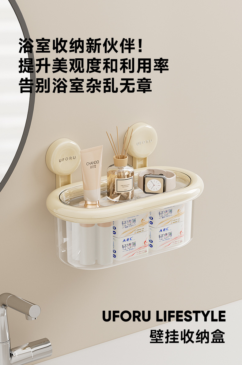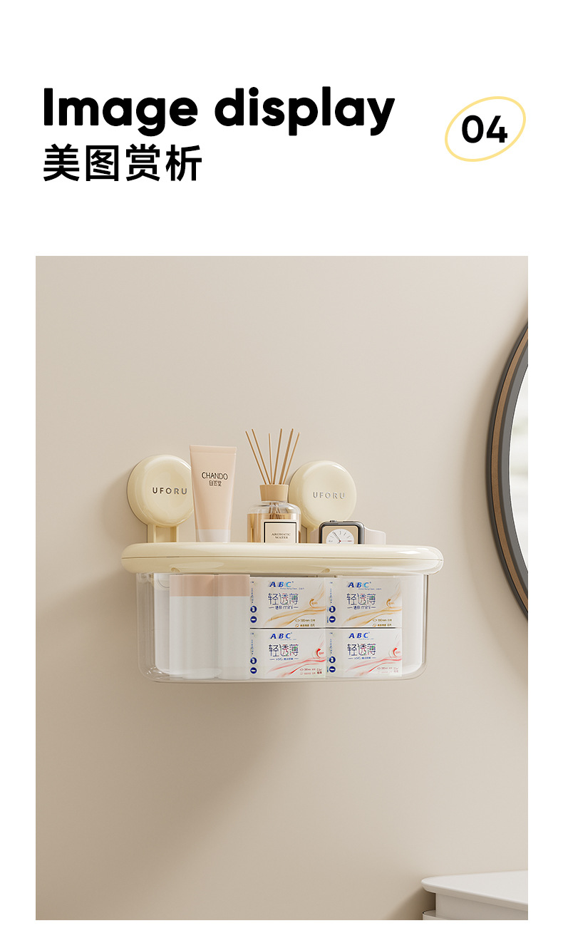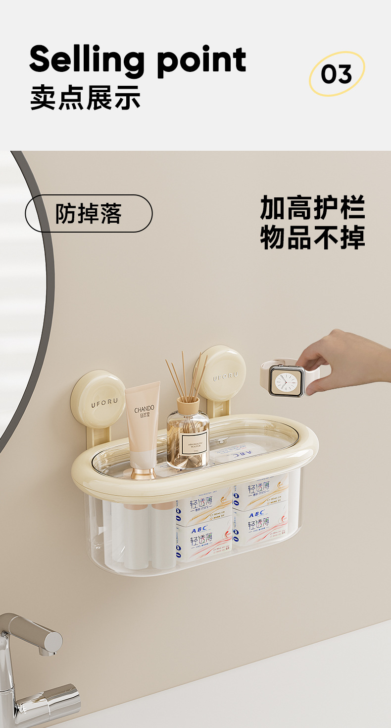 욕실 투명 저장 상자 가정용 벽 교수형 구멍이없는 빨판 저장 상자 욕실 다기능 플라스틱 보관 랙스토어 가기