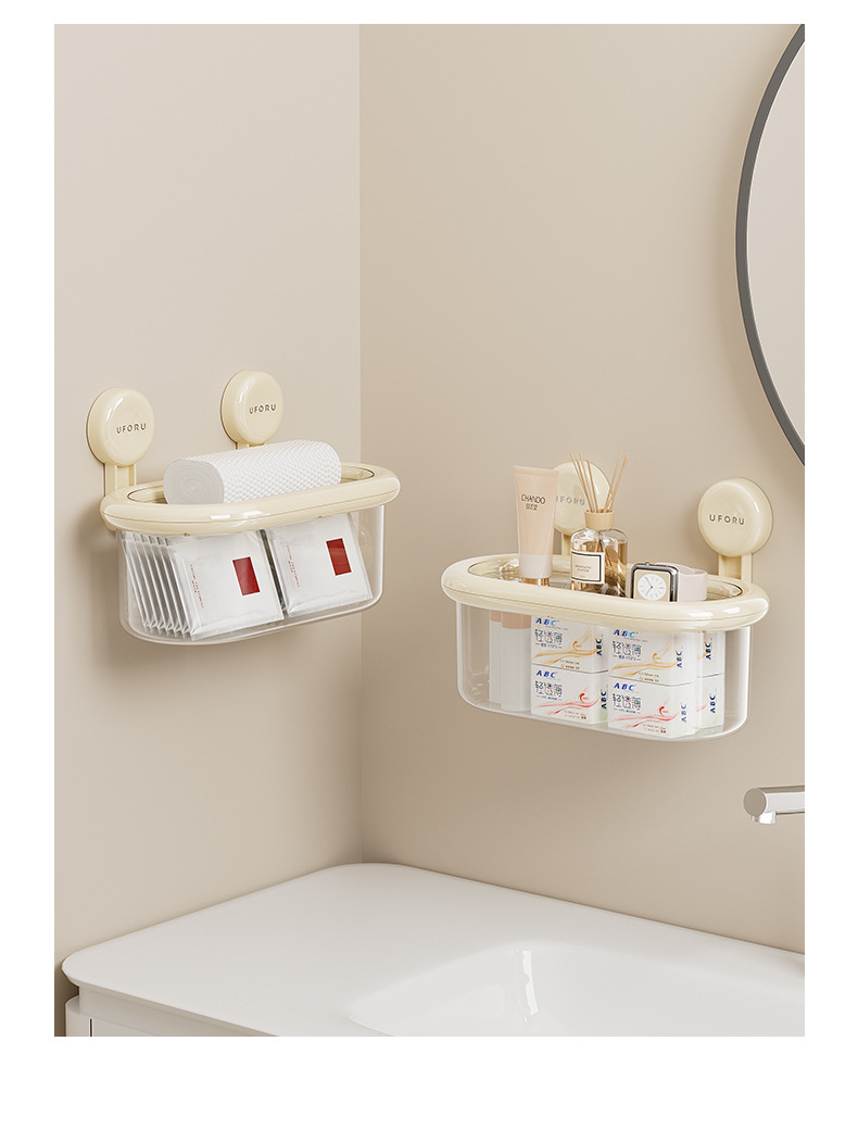 욕실 투명 저장 상자 가정용 벽 교수형 구멍이없는 빨판 저장 상자 욕실 다기능 플라스틱 보관 랙