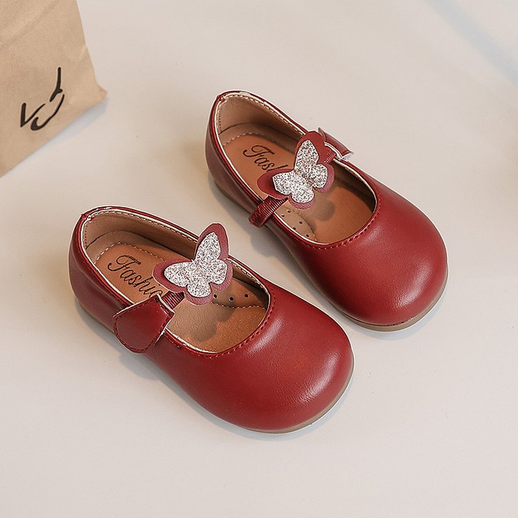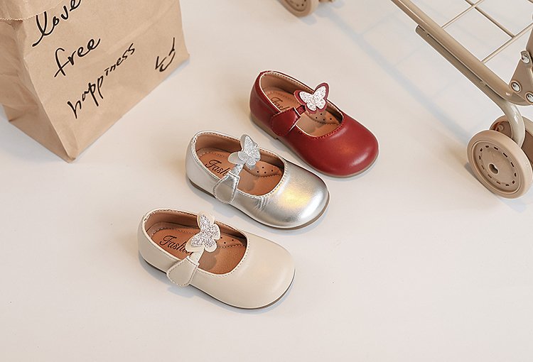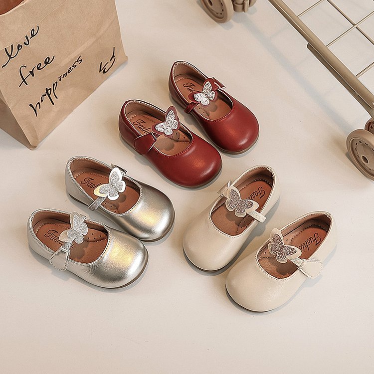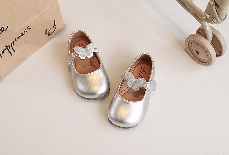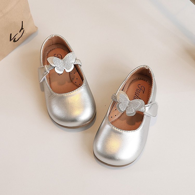 소녀 공주 신발 2025 봄과 가을 새로운 어린이 실버 작은 가죽 신발 세련된 아기 부드러운 밑창 어린 소녀 신발스토어 가기