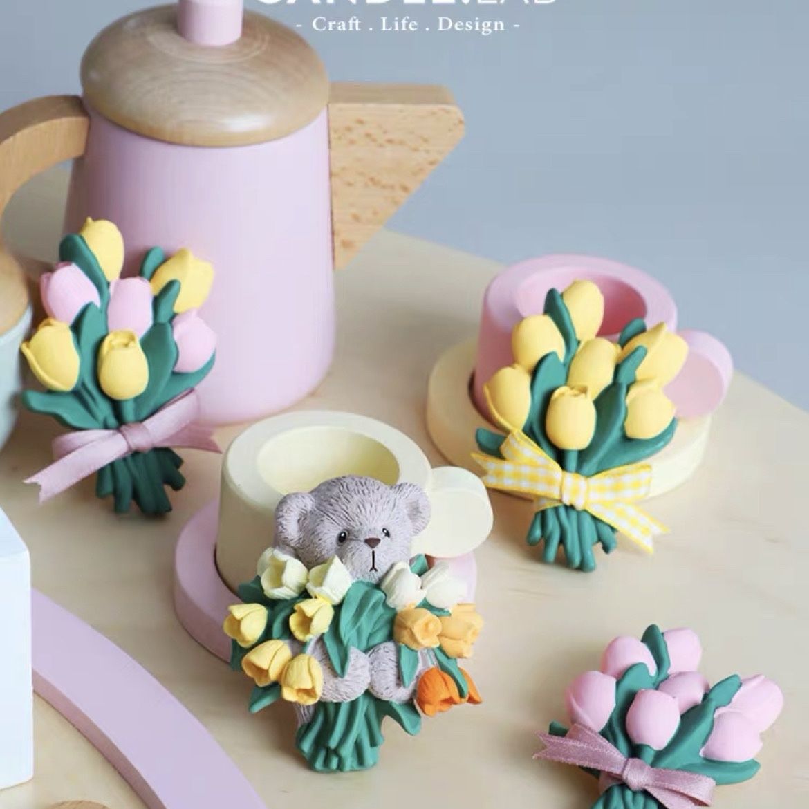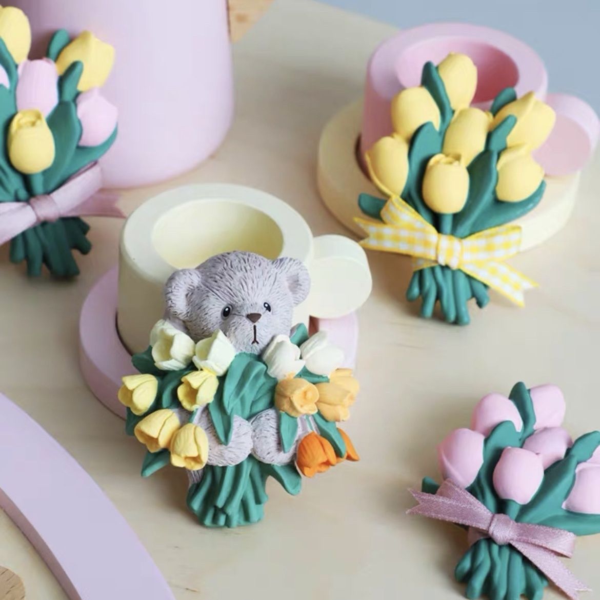 • 튤립을 안고 있는 꼬마곰 [석고인형]