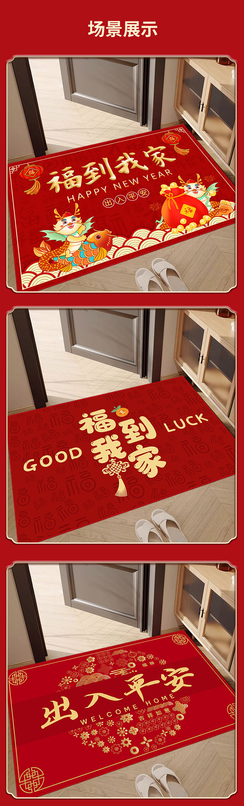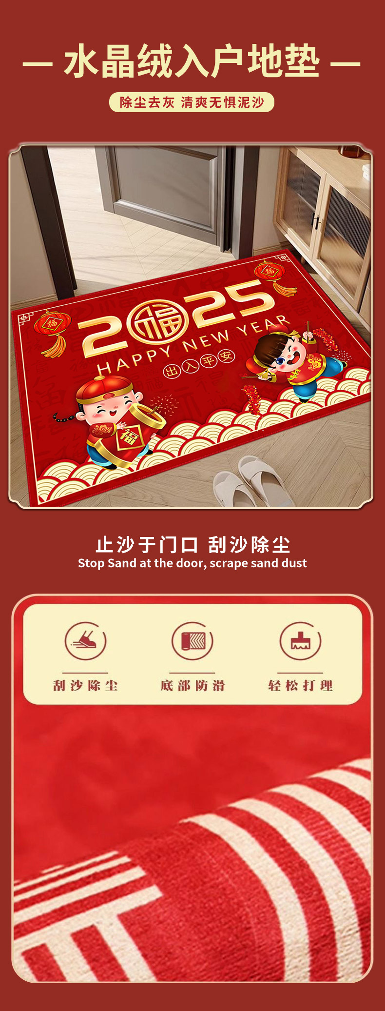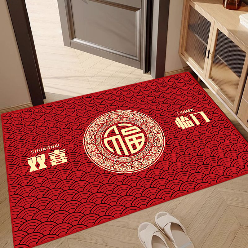 레드 홈 플로어 매트 도어 웨이 풋 매트 미끄럼 방지 두꺼운 크리스탈 벨벳 매트 복도 고급 센스 카펫