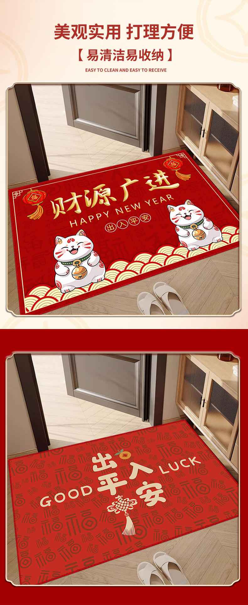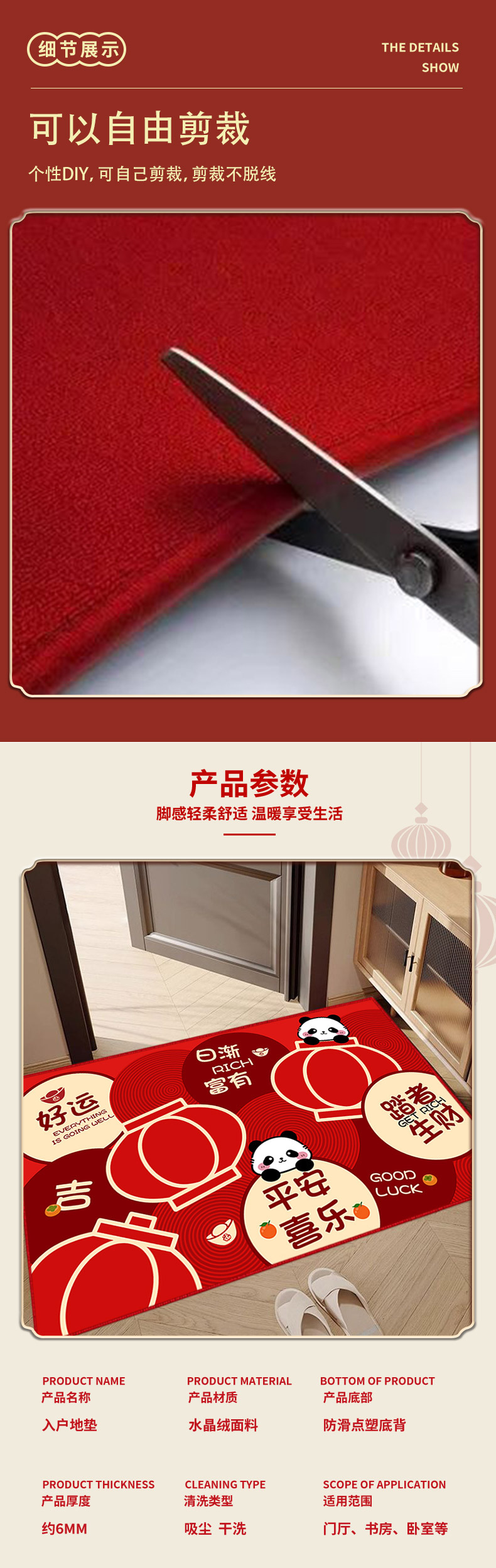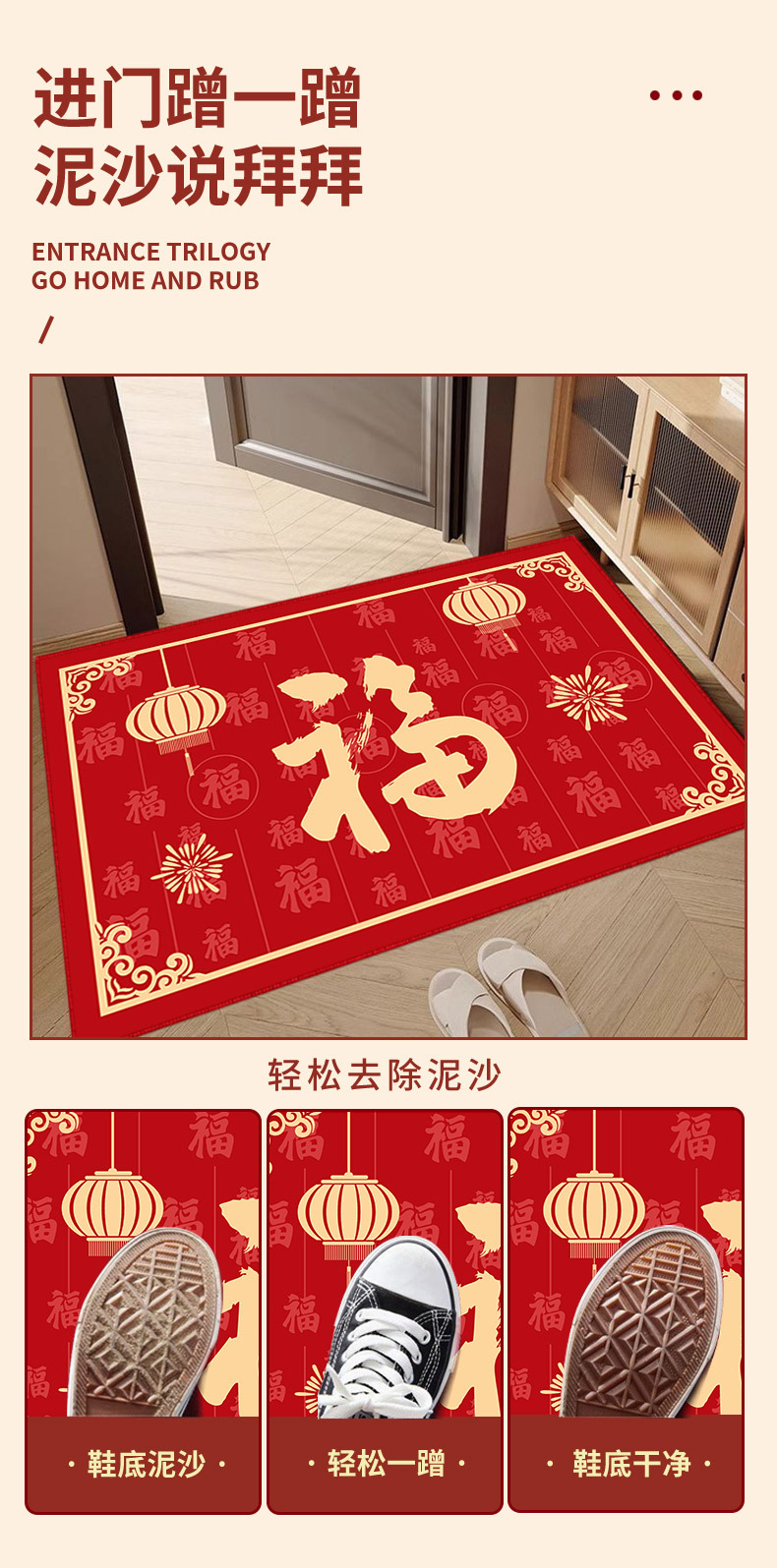 레드 홈 플로어 매트 도어 웨이 풋 매트 미끄럼 방지 두꺼운 크리스탈 벨벳 매트 복도 고급 센스 카펫