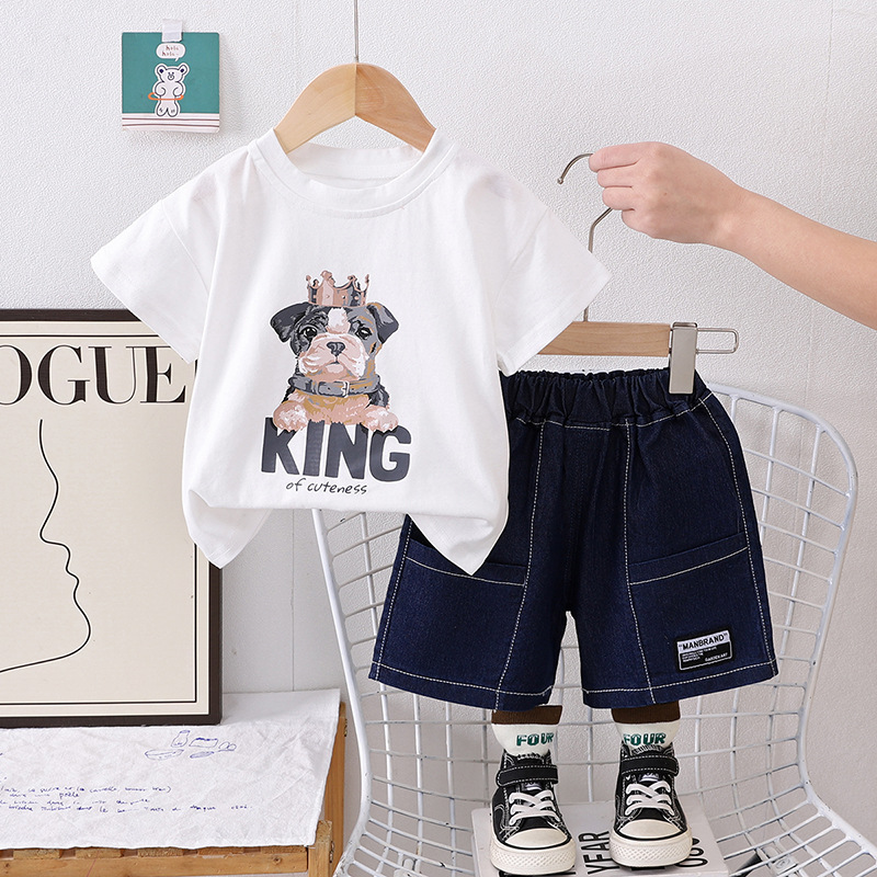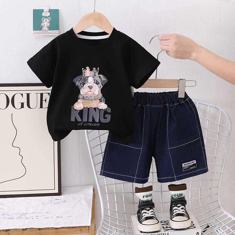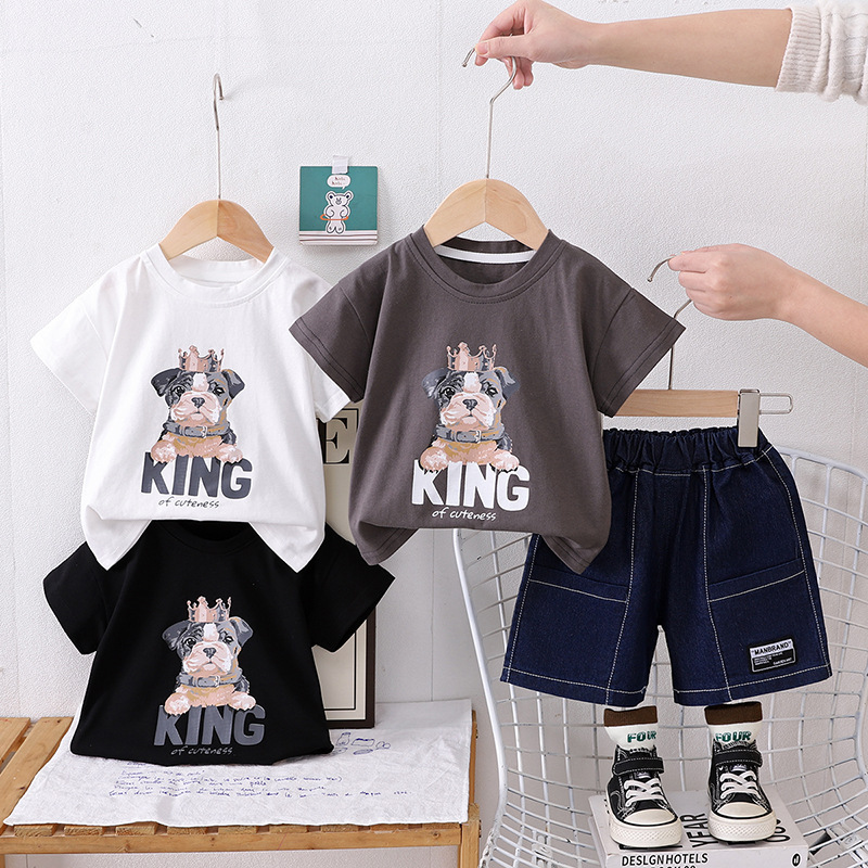 2025 새 여름 한국 아동복 소년 유아 만화 짧은 소매 두 반바지 세트 세대 머리카락